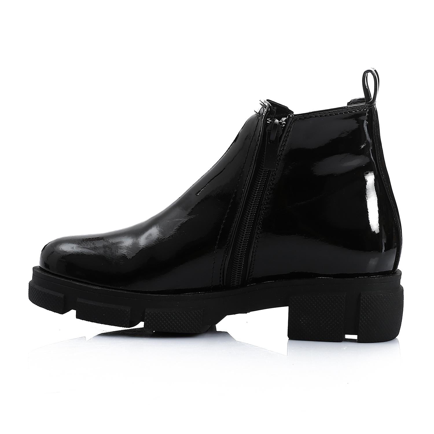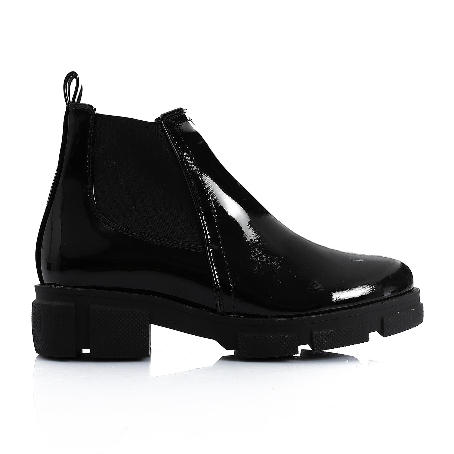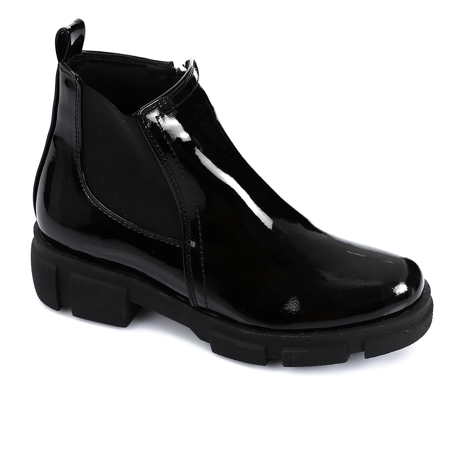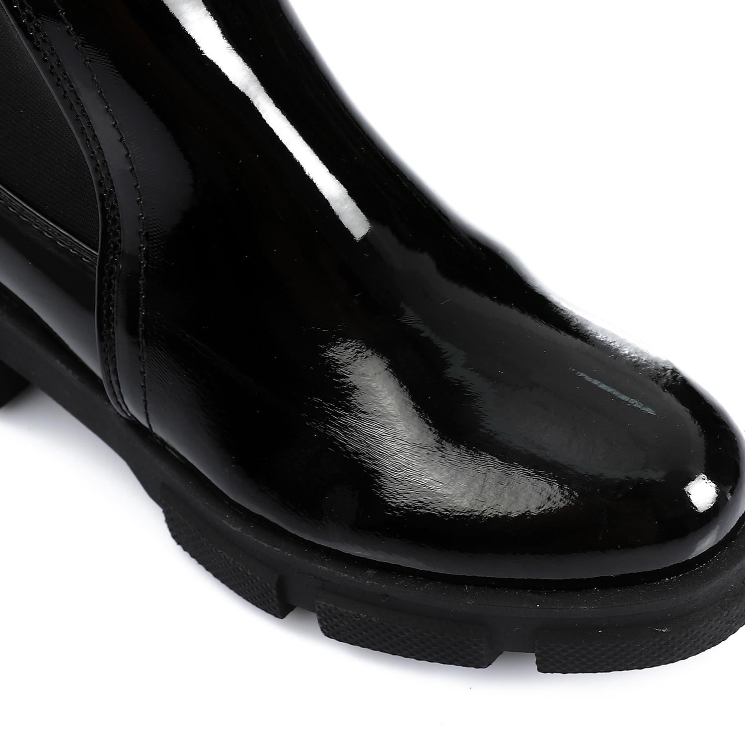 - Key Features: High-shine Patent finish, classic Chelsea boot profile with elasticated sides, durable chunky PVC lug sole, pull tab at the back for easy on/off.