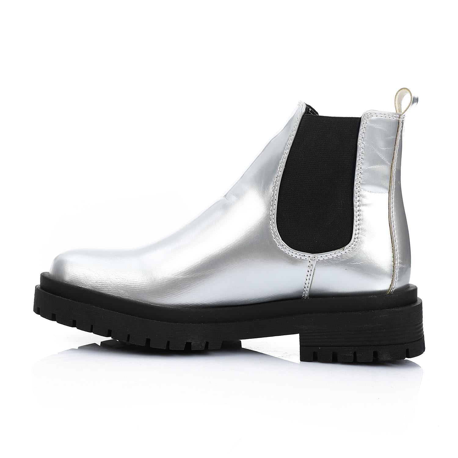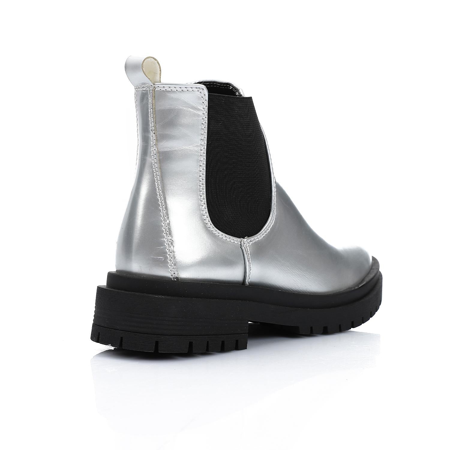 - Key Features: High-shine metallic silver finish, classic Chelsea boot profile with elasticated sides, durable chunky lug sole, pull tab for easy on/off.