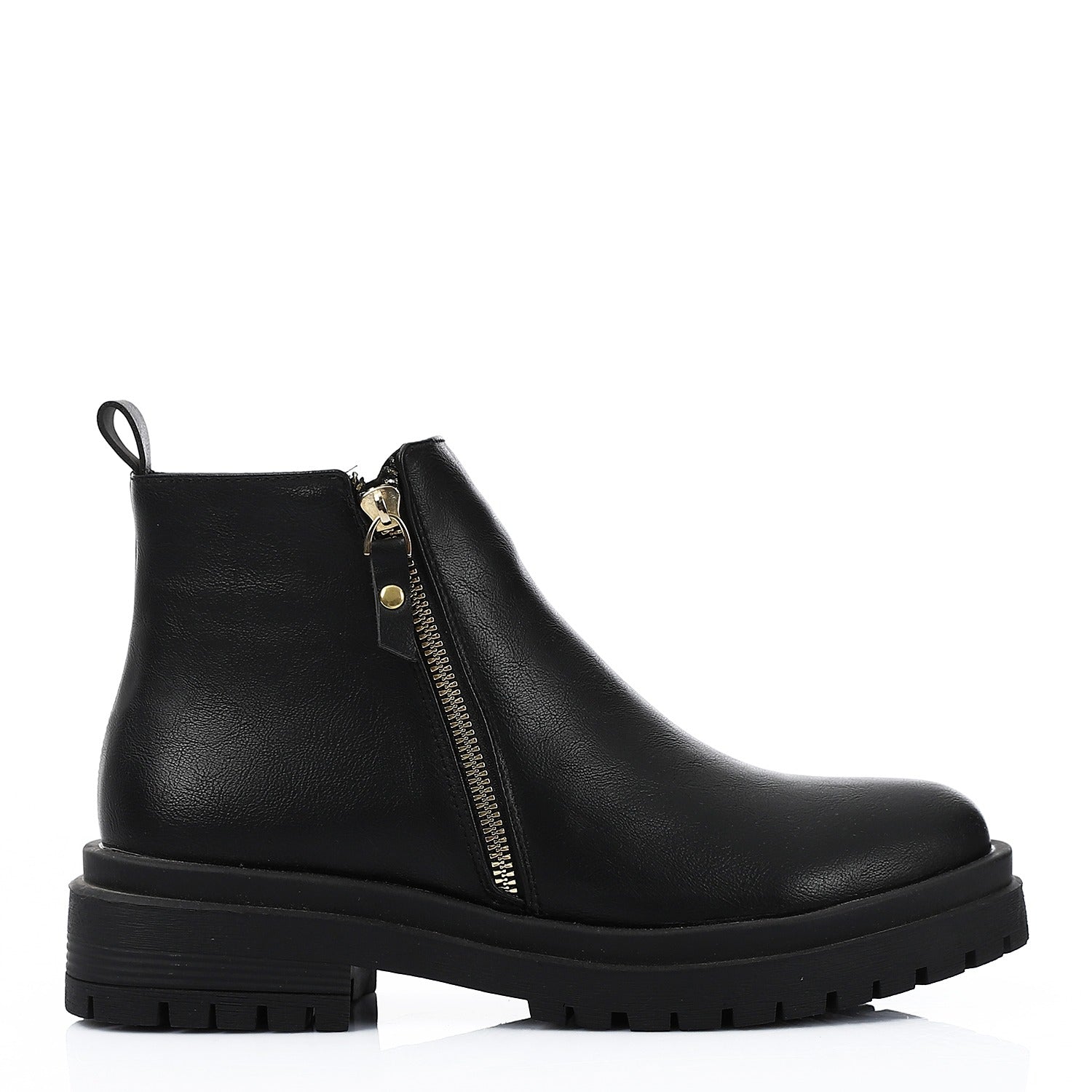- Key Features: Fashionable chunky lug sole, striking gold-toned side zipper, comfortable Italian foam lining, durable leather construction, pull tab for easy on-and-off