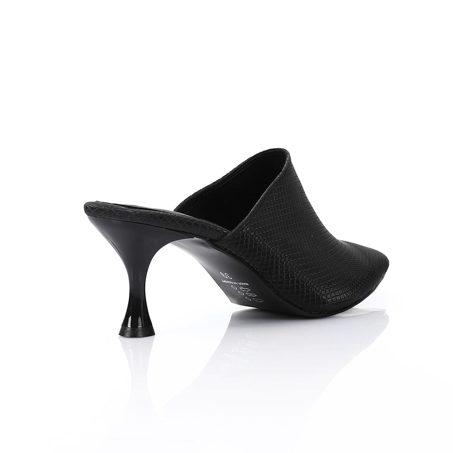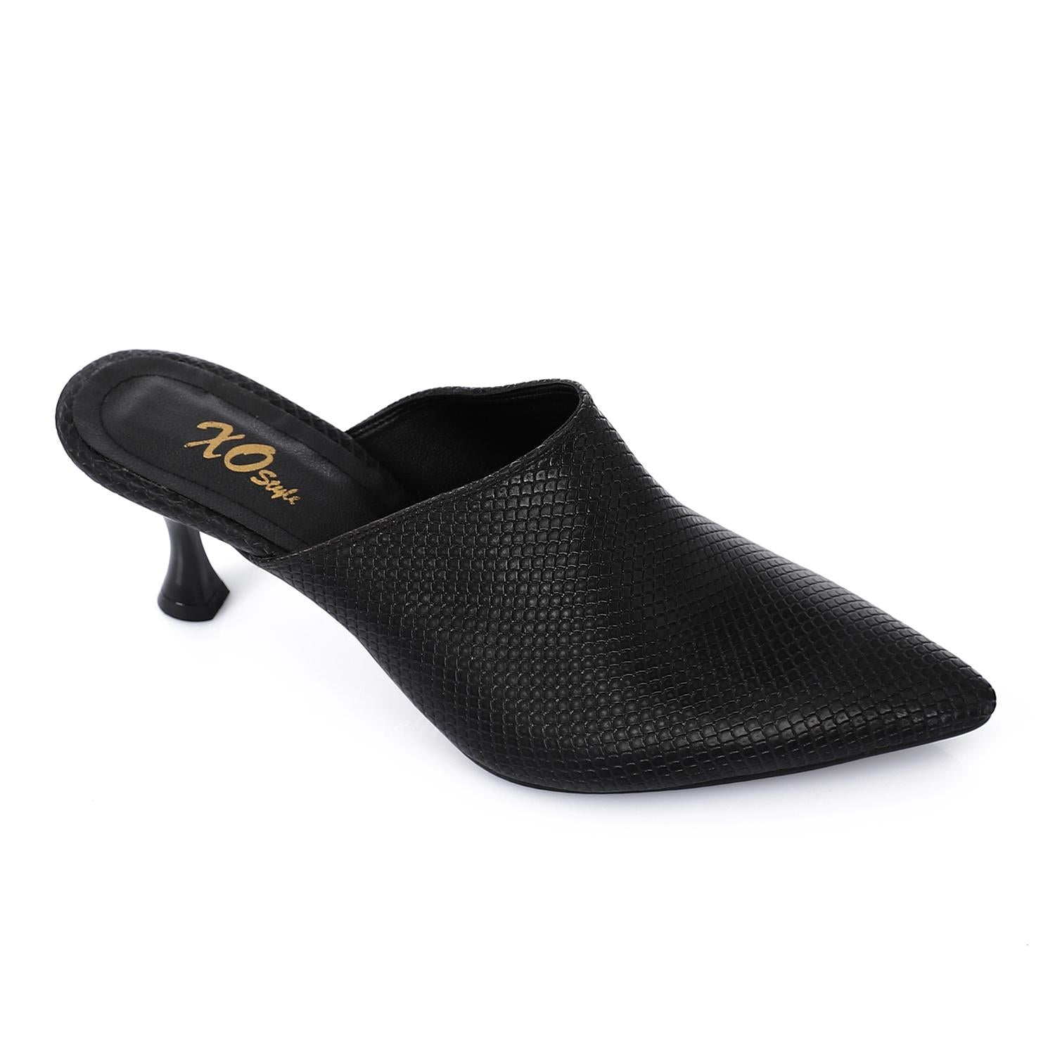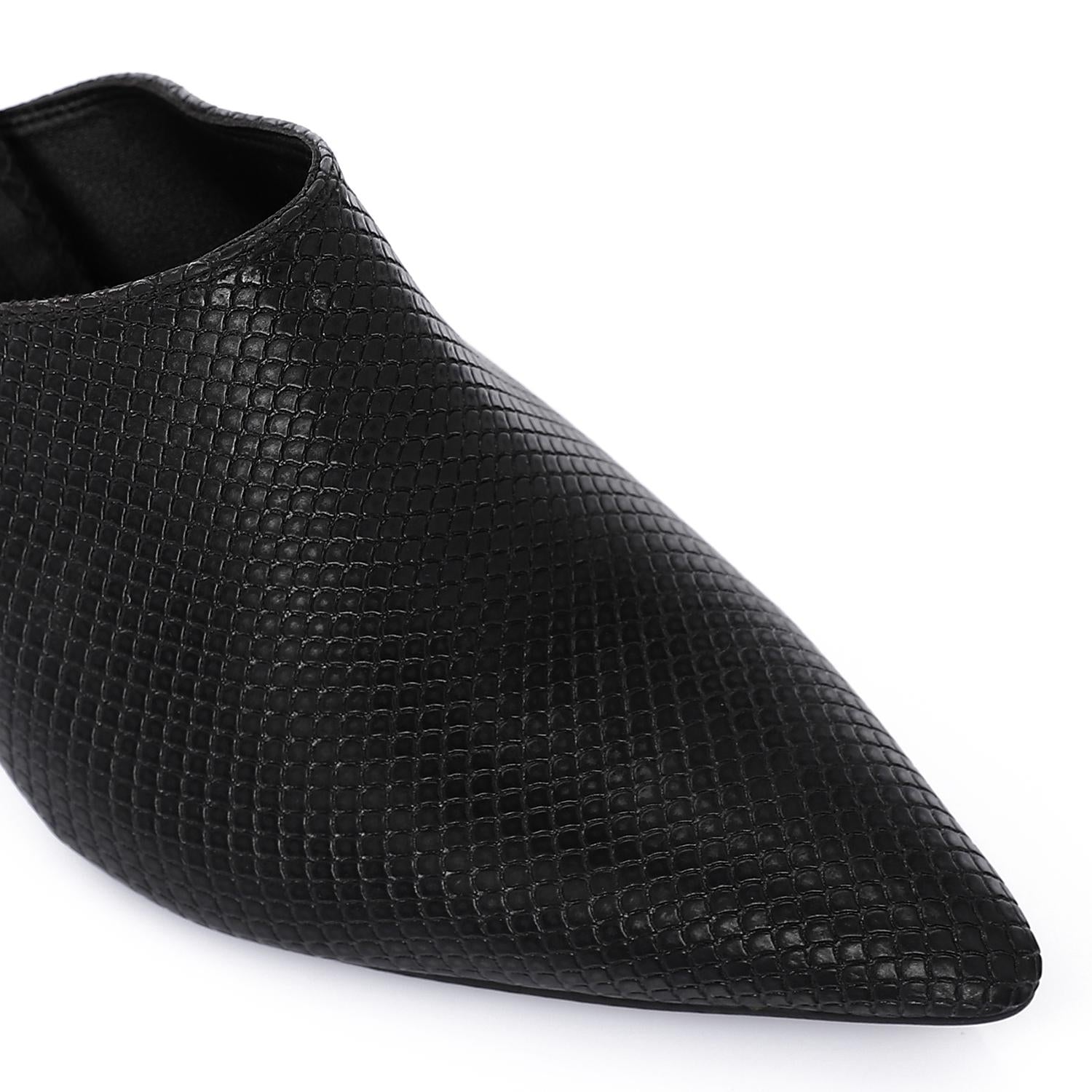 - Key Features: Classic backless design, sleek pointed toe, textured leather finish, cushioned comfort insole, stable kitten heel