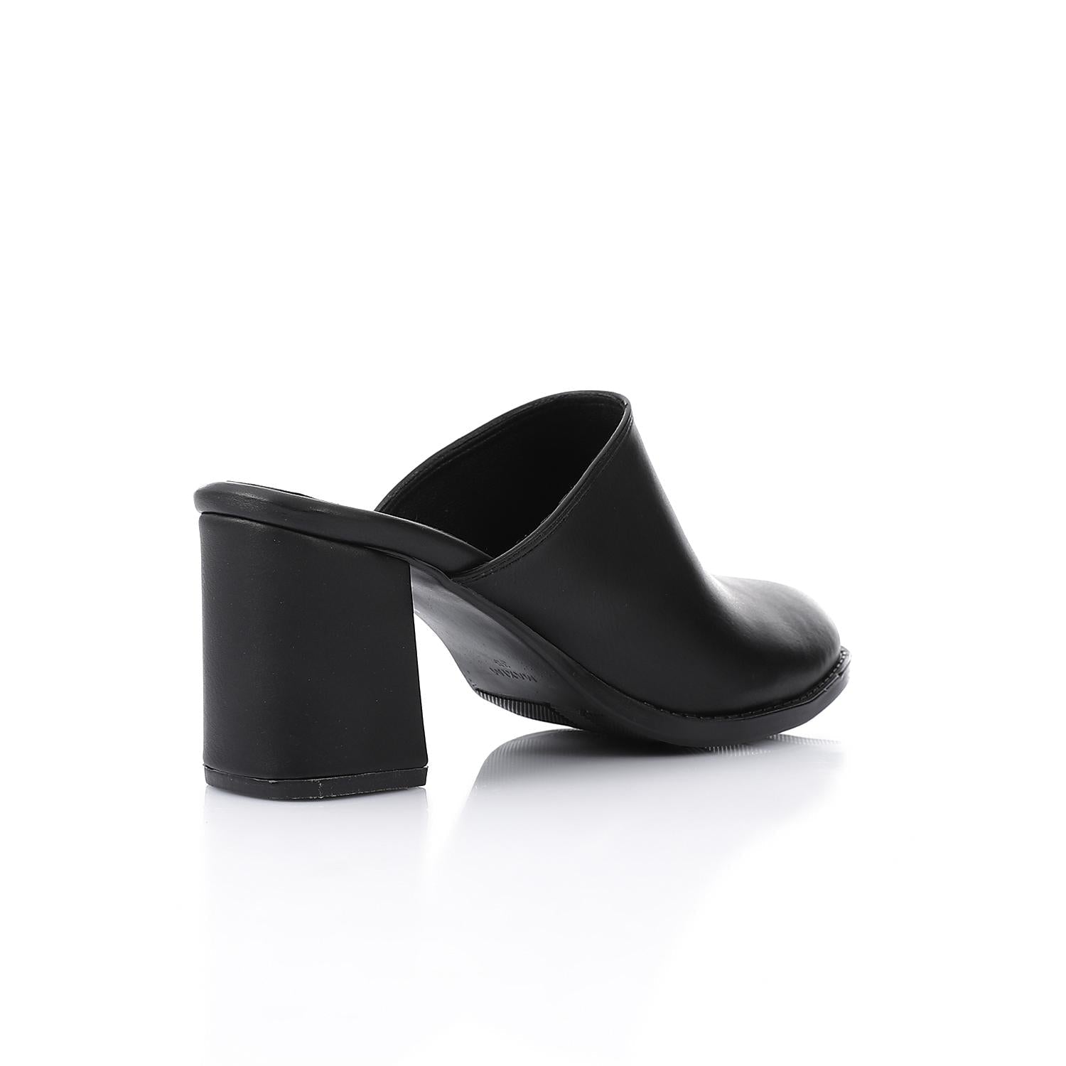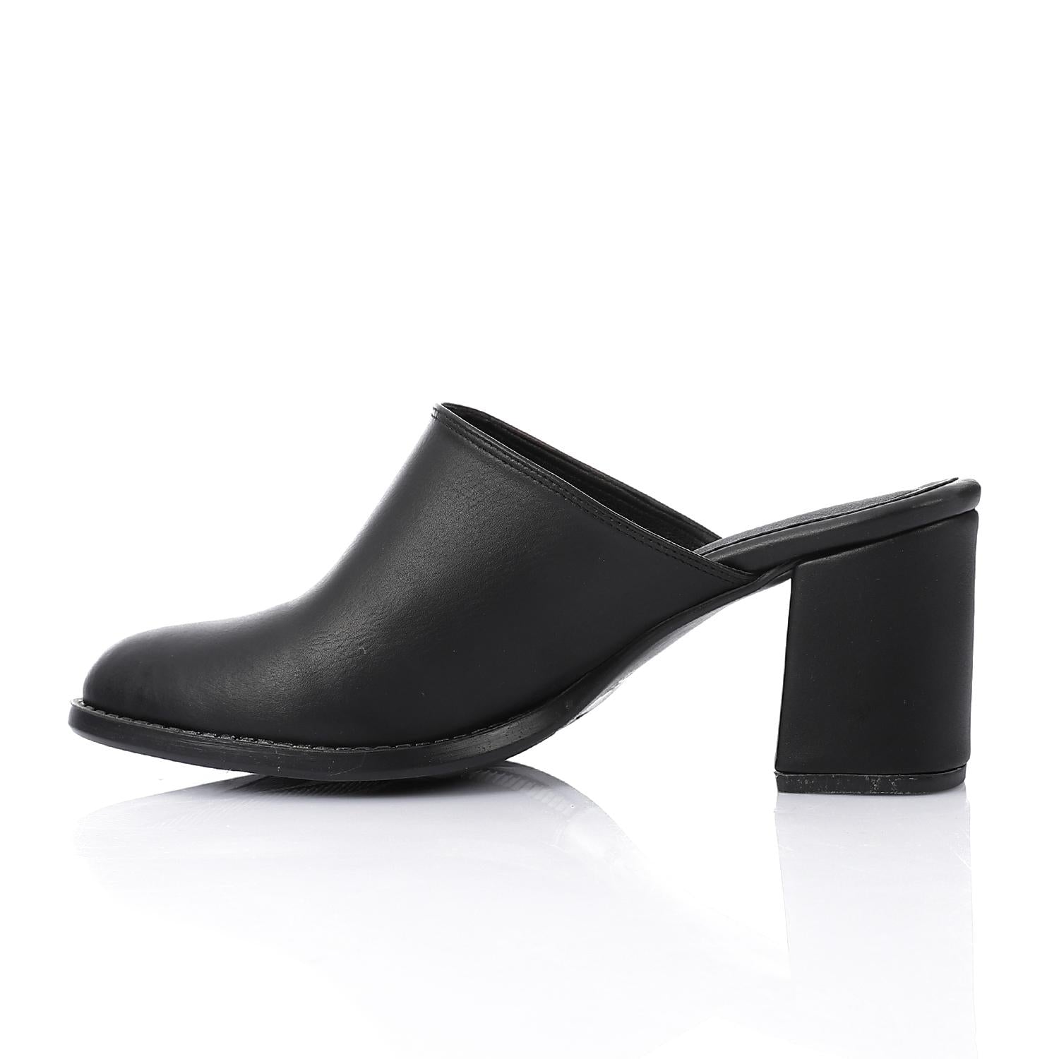 Leather Solid Block Heel Mules – Black