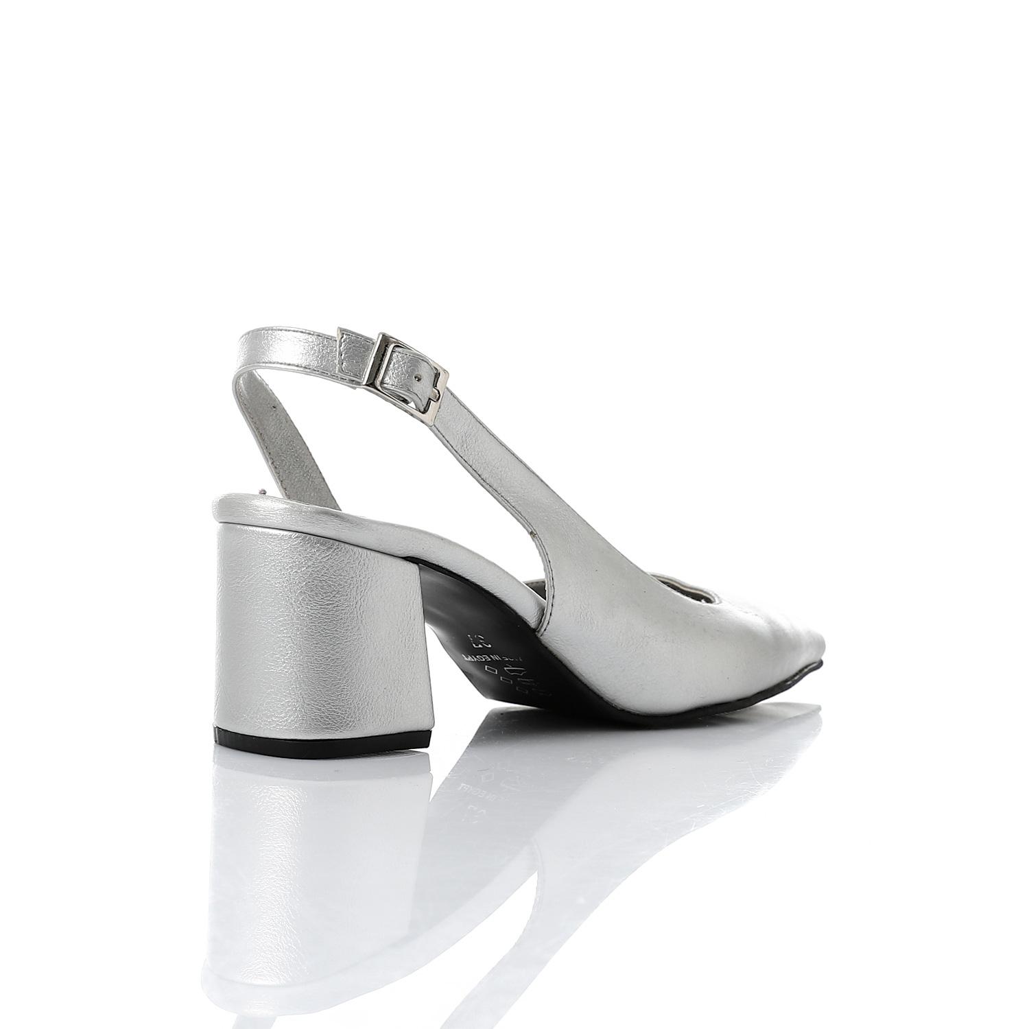 Faux Leather Solid Block Heel Slingback Pumps - Silver
