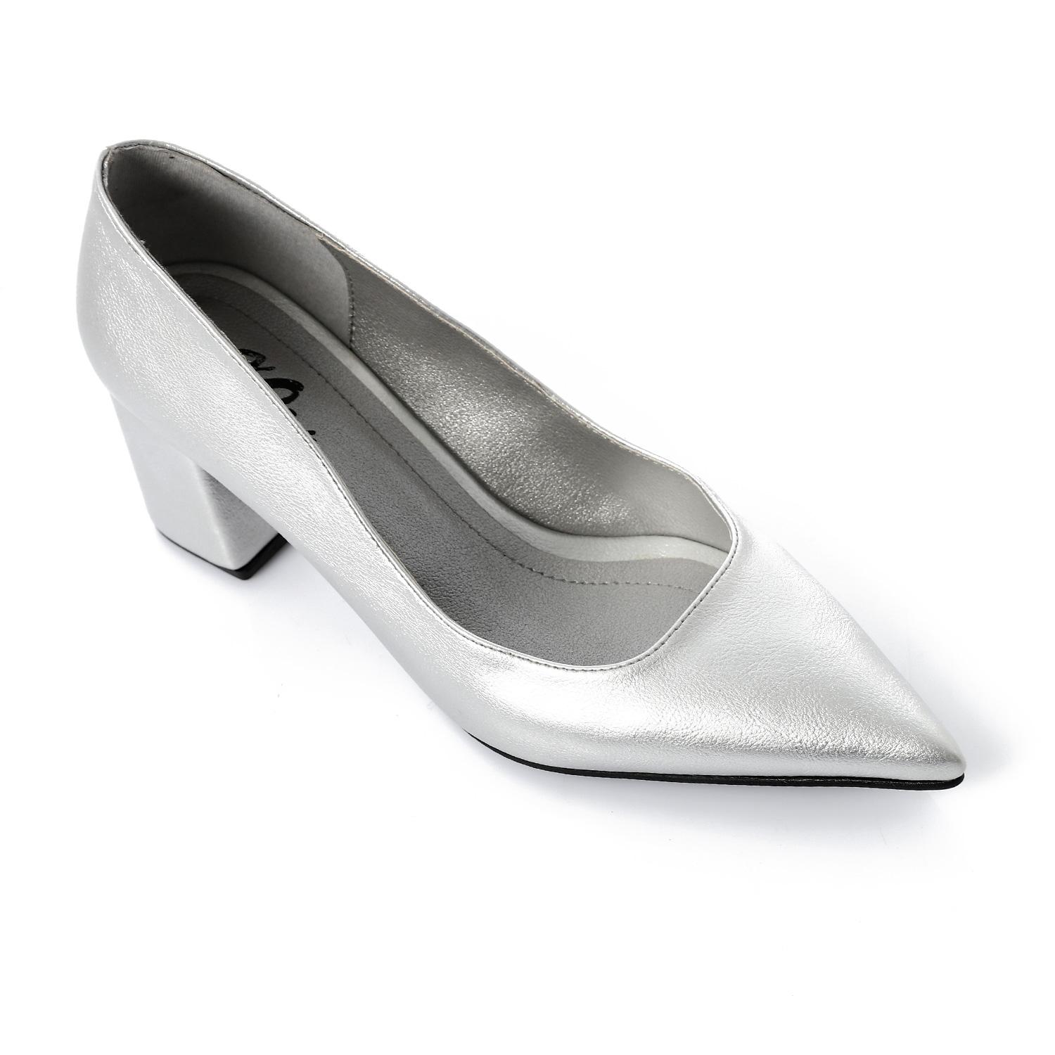 Faux Leather Solid Block Heel Pumps – Silver