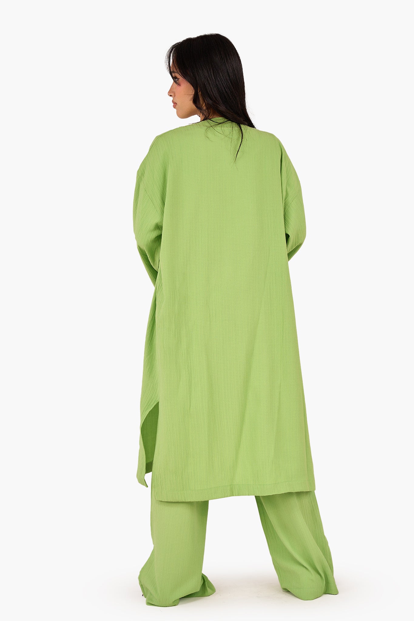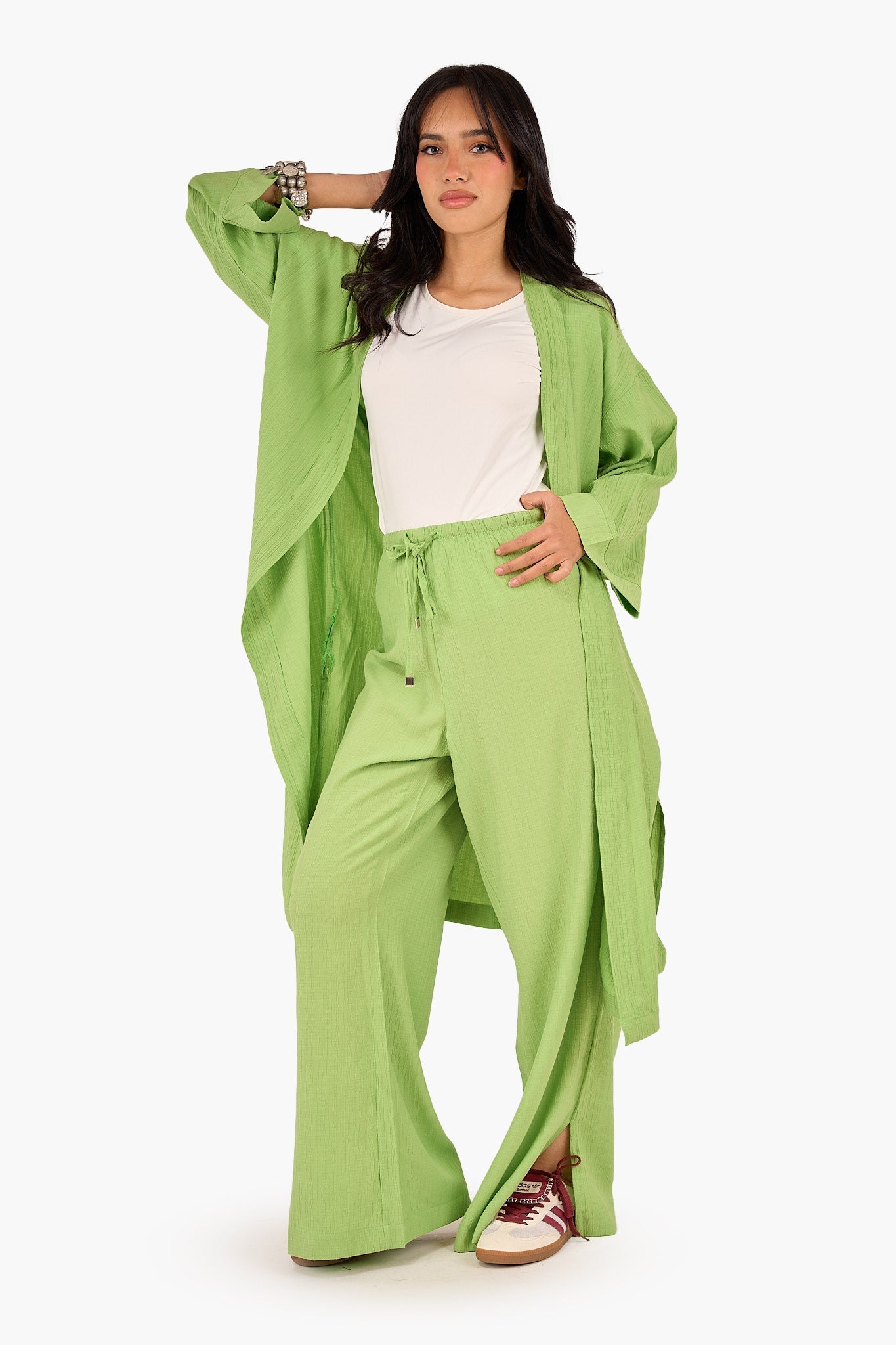 Wrap yourself in effortless elegance with this Tencel kimono, designed for a relaxed fit that offers both comfort and style. Crafted from luxuriously soft Tencel, it features a textured pattern that adds depth and sophistication to its minimalist design. The open neckline creates a graceful drape, while the long sleeves provide an airy yet refined silhouette. Falling to a midi length with side slits, this kimono allows for ease of movement, making it the perfect layering piece for any occasion. Whether worn casually or as a statement piece, its easy-to-wear design ensures effortless styling.