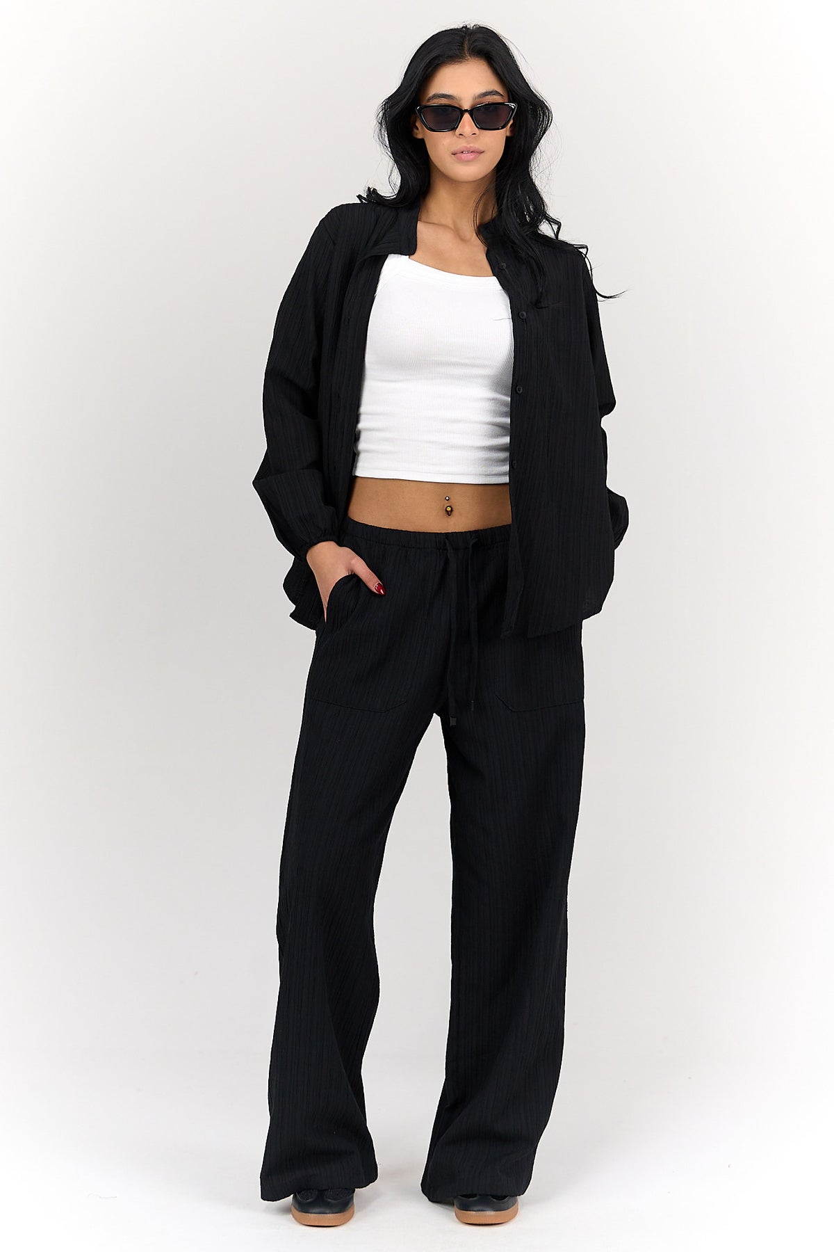 Crafted from Tencel with a subtle self-patterned texture, this loose-fit shirt offers both comfort and style. The stand collar and button-down closure with a full placket give it a polished, versatile look, while the long sleeves and round hem add a relaxed touch. Designed for easy wear, this shirt can be paired with its matching pants for a coordinated outfit that’s perfect for casual and smart-casual settings.