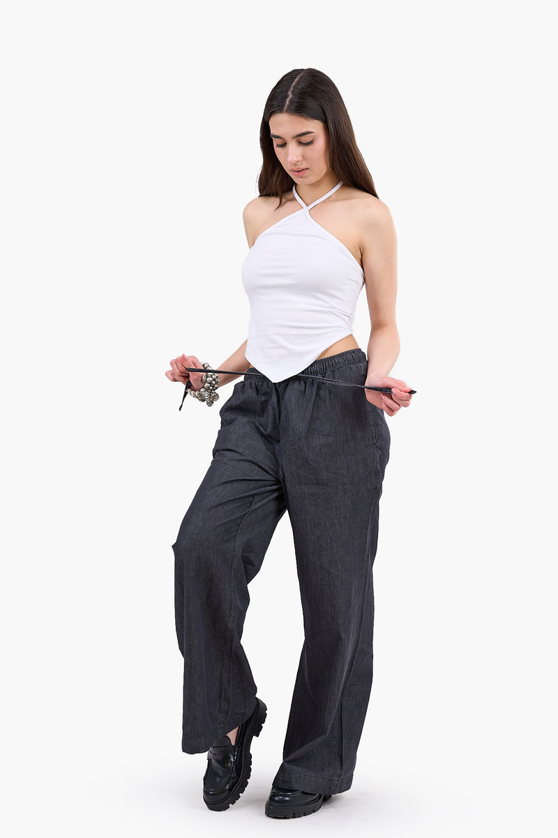 Turn heads with this Halter Neck Backless Slim Fit Top, designed for a bold and modern look. Made from smooth polyamide fabric, this top offers a flattering slim fit that hugs your curves while keeping things chic and comfortable. The halter neck adds an elegant touch, drawing attention to your shoulders and collarbones, while the backless design adds a daring and alluring element.The asymmetrical cut gives this top a unique, fashion-forward edge, making it perfect for both casual and semi-formal occasions. Sleeveless for those warmer days, this top is easy to wear and pairs beautifully with jeans, skirts, or tailored pants, giving you a versatile piece for your wardrobe.