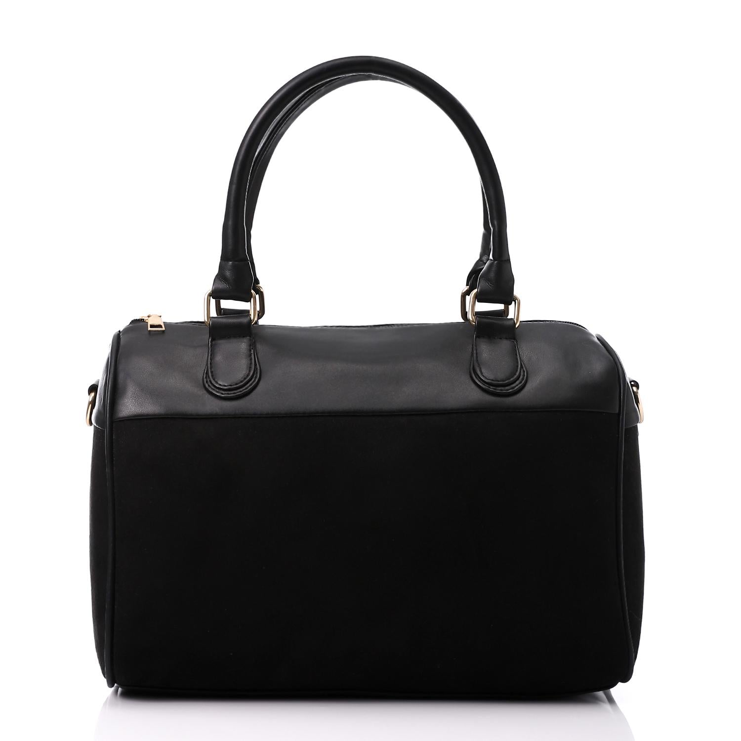 Unique Feature: Combination of faux leather trim with soft suede panels; dual rolled handles for easy carry