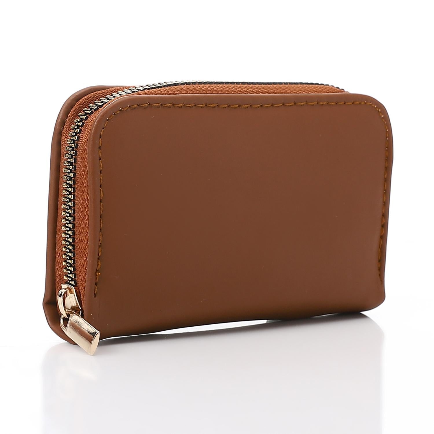Synthetic Leather Zipped Wallet - Coffee