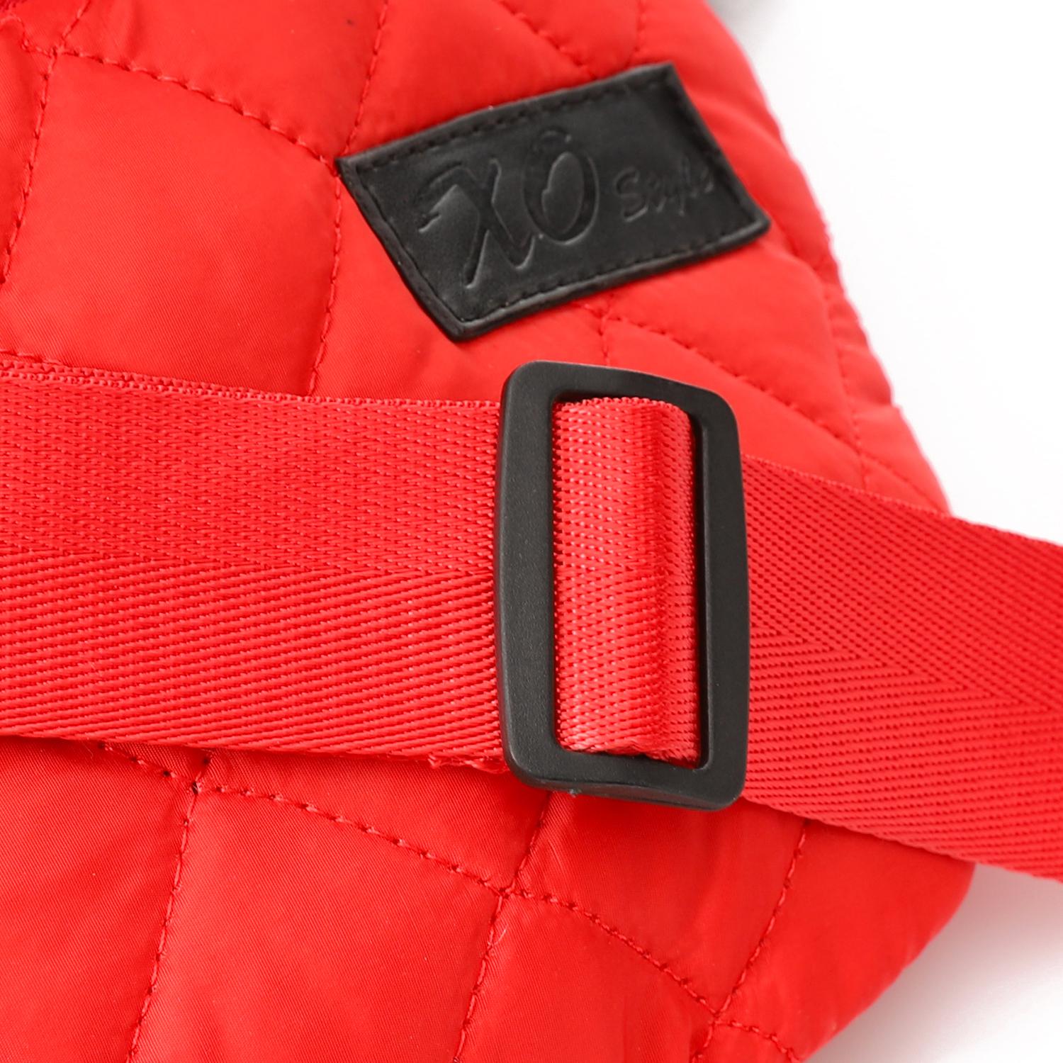 Unique Feature: Shiny quilted padded body with wide adjustable strap for versatile wear (crossbody or waist)