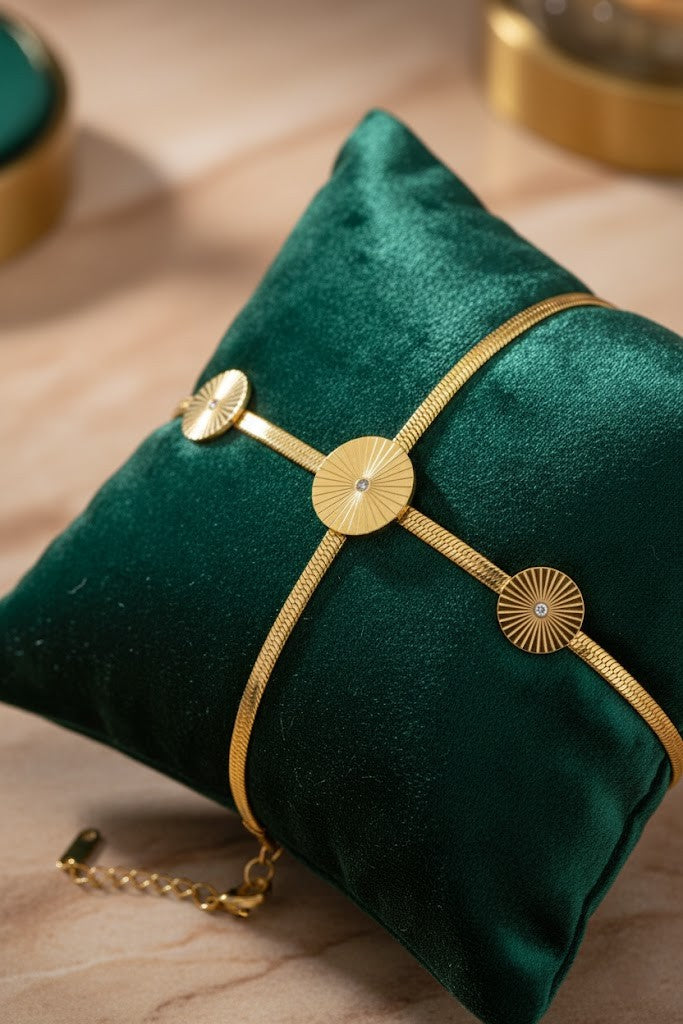 - Key Features: Flexible snake chain design, dual patterned charms, sparkling crystal details, durable gold finish