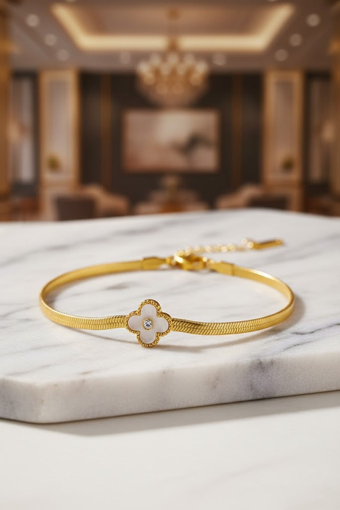 Stainless Steel Snake Chain Clover Charm Bracelet – Gold