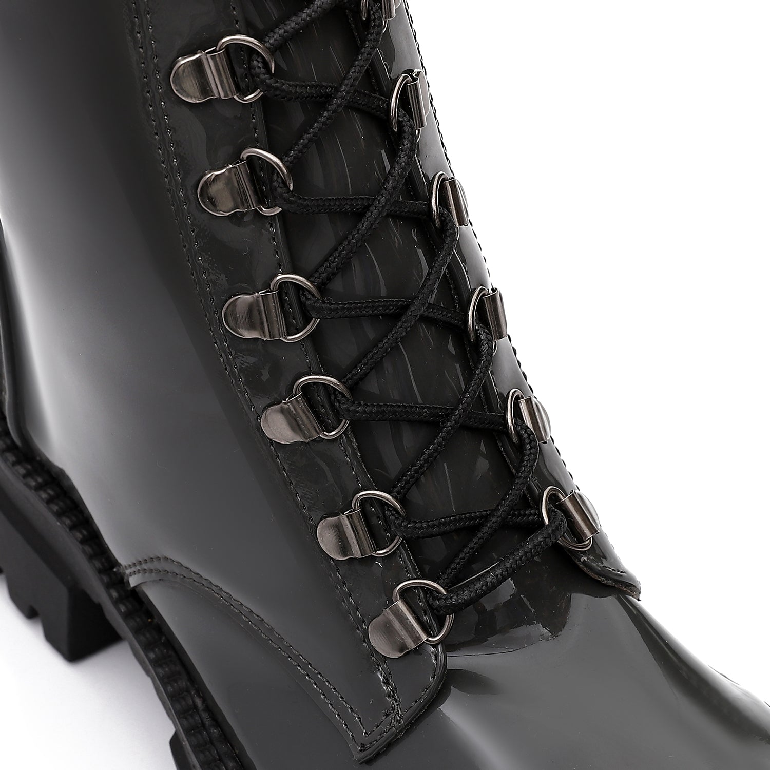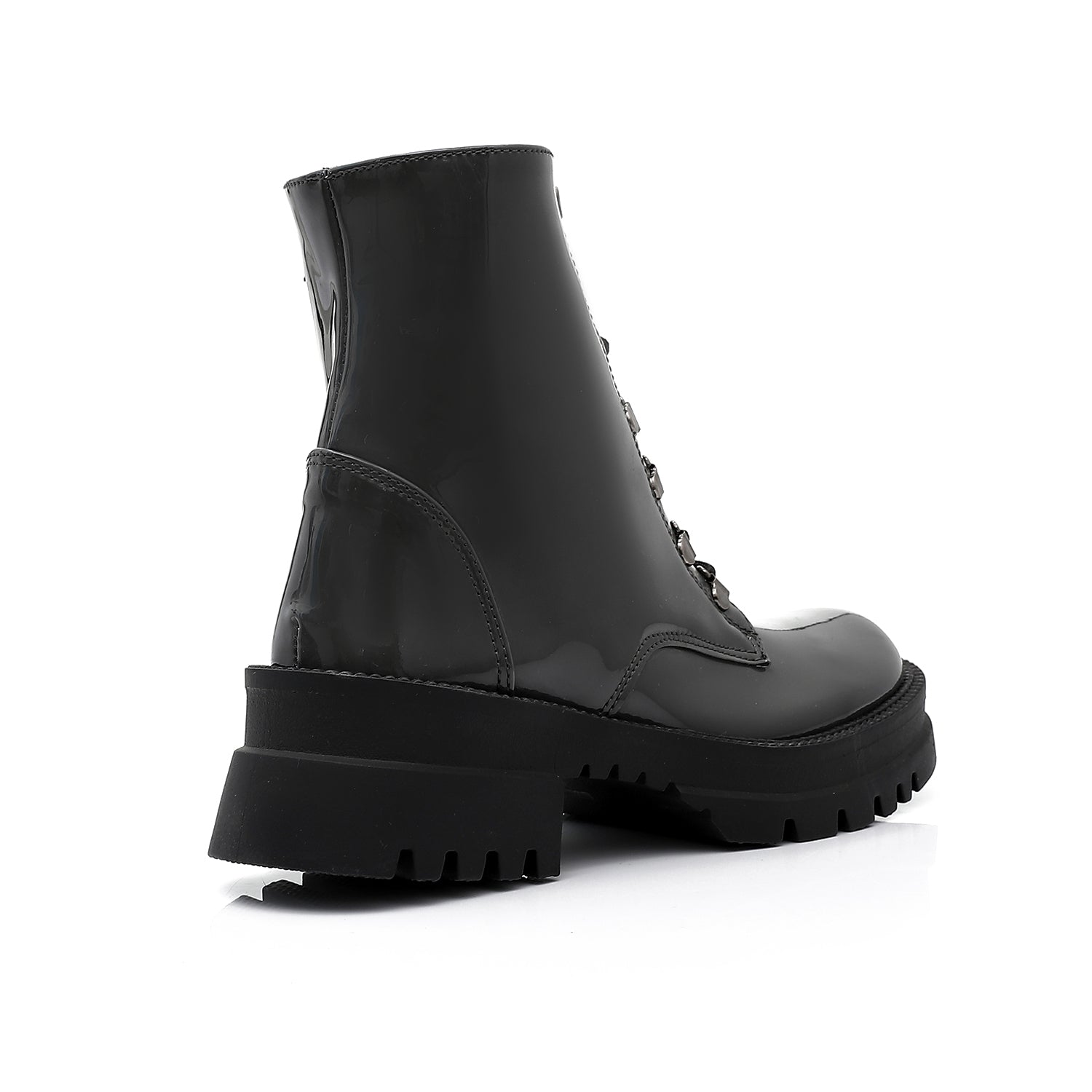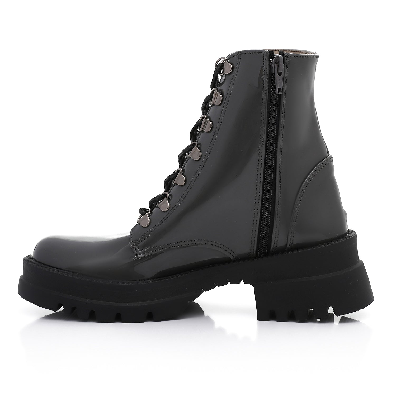 - Key Features: Glossy leather finish, dual closure (lace-up + side zipper), durable lug sole, comfortable lining