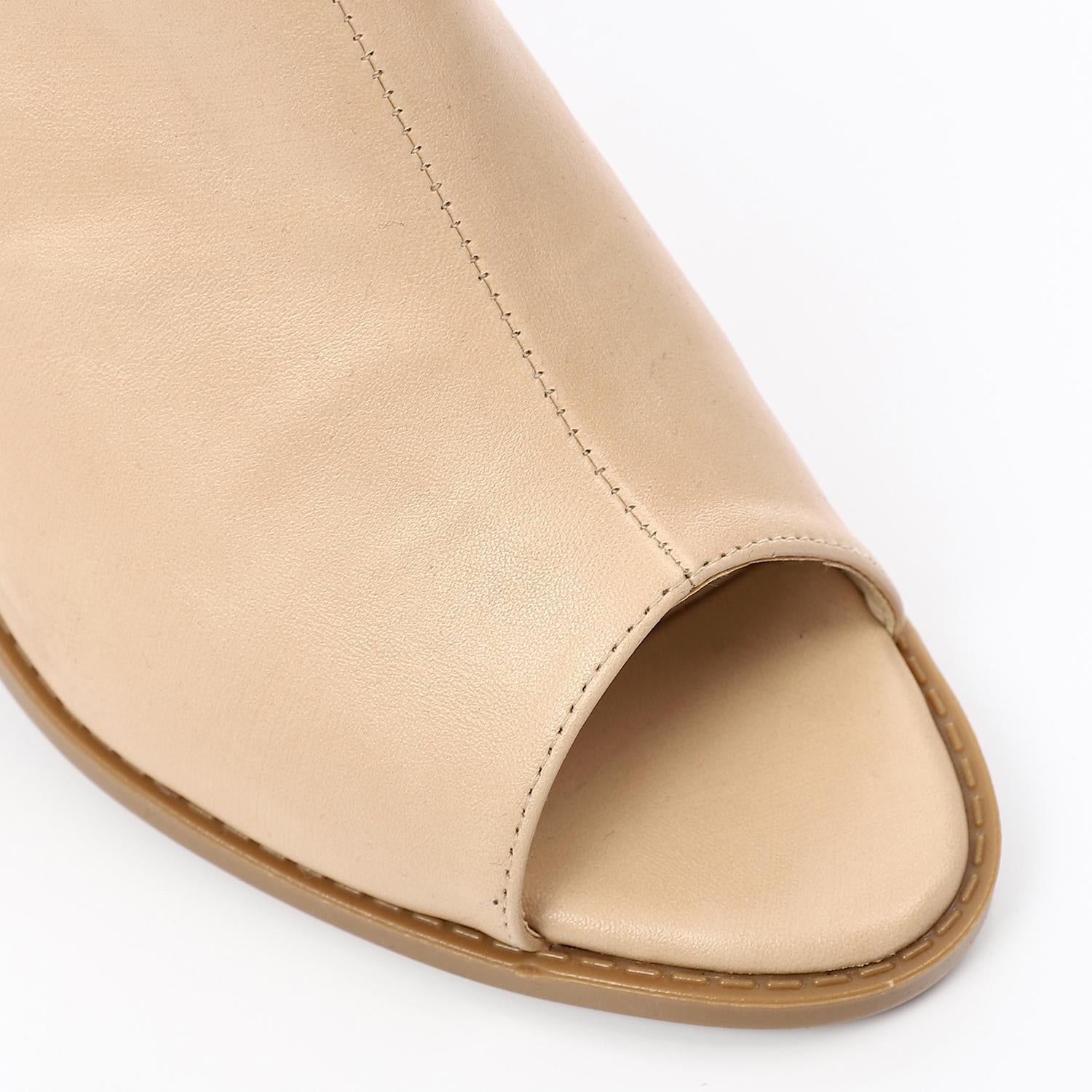 Faux Leather Mule Sandal - Beige