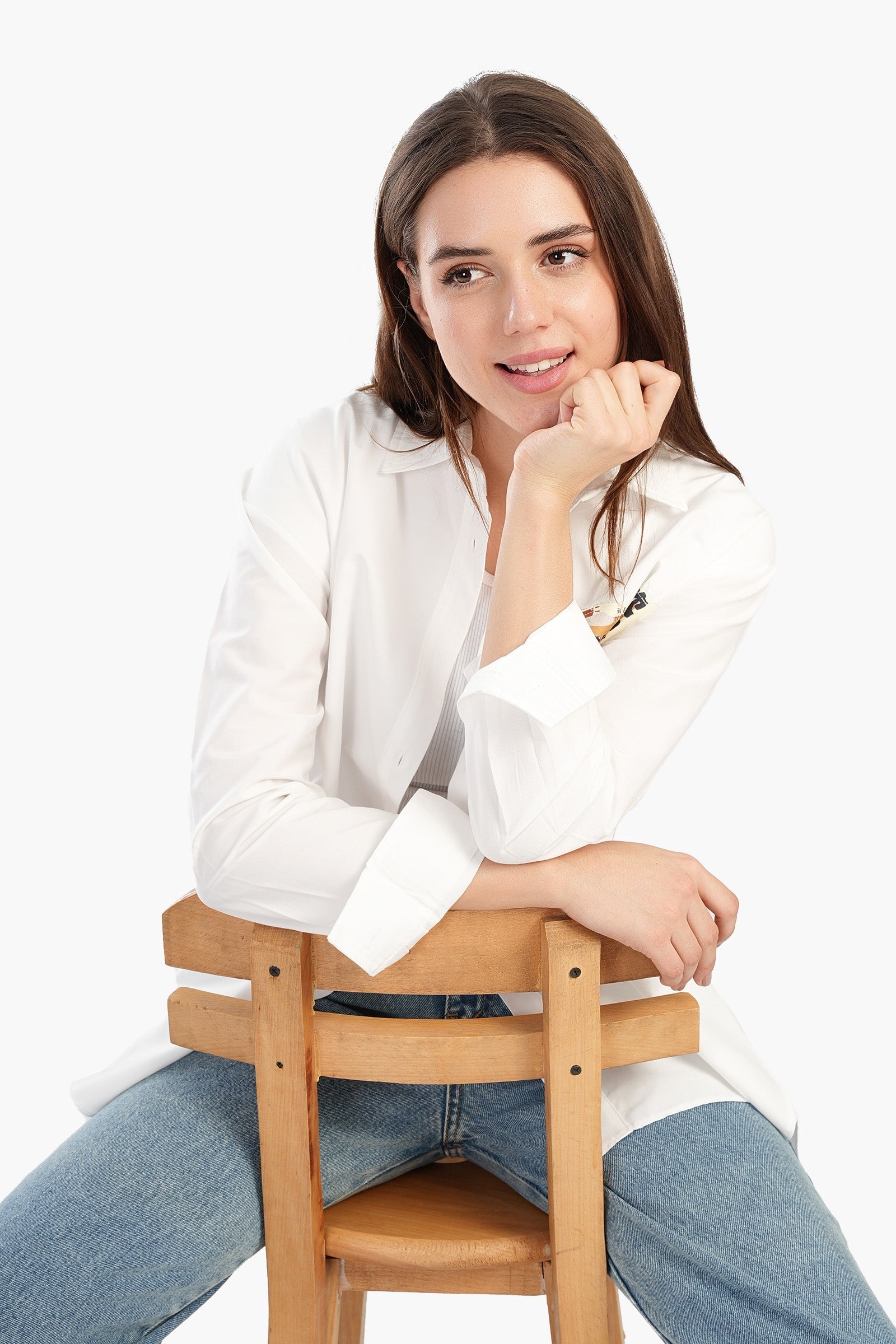 - Leave it untucked with leggings or slim-fit pants for a laid-back, modern outfit.