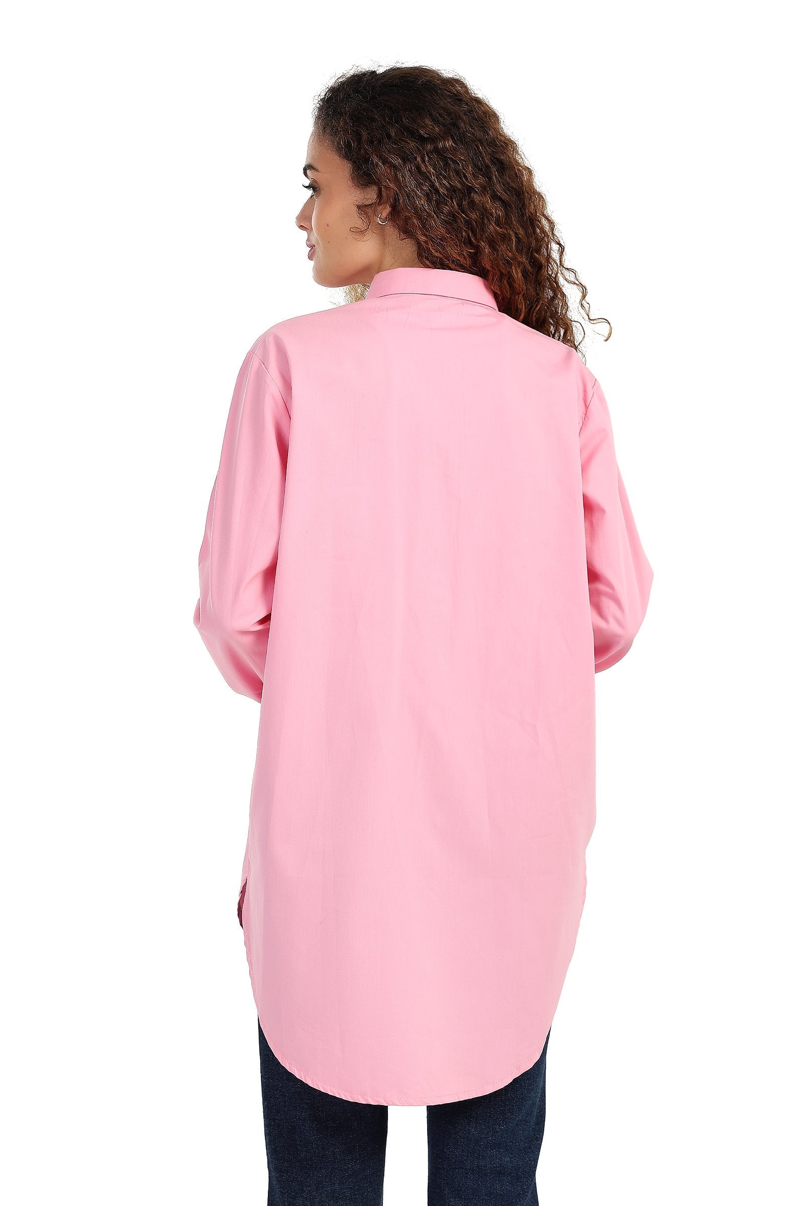 Effortlessly versatile and timeless, this everyday shirt is a must-have for your wardrobe. Designed with a relaxed fit, it ensures all-day comfort without compromising on style. The solid pattern provides a clean and classic look, while the collared neck and button-down closure with a full placket lend a polished touch. The high-low design, complemented by a round hem and side slits, adds a modern flair and enhances movement and breathability. Perfectly suited for both casual and semi-formal settings, this easy-to-wear shirt seamlessly blends functionality and style.