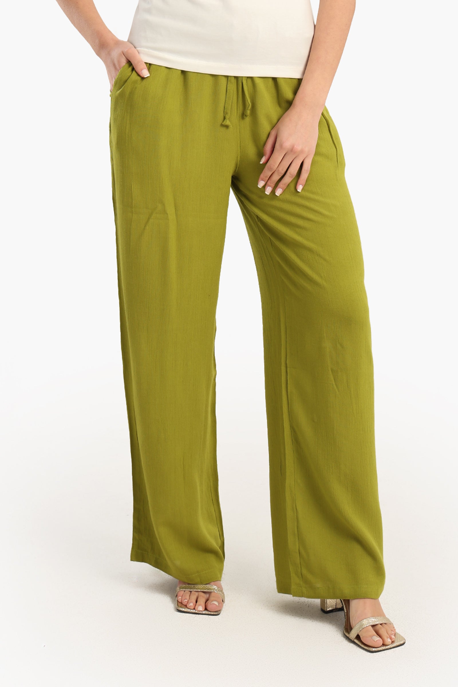 Crafted from a soft and breathable viscose blend, these women’s lounge pants offer the perfect balance of comfort and style. Designed with a relaxed fit, they feature a high-waisted design with an elastic waistband and adjustable drawstring, ensuring a secure and customizable fit. The solid pattern adds a touch of minimalistic elegance, making them a versatile wardrobe staple. With a wide-leg cut and full-length design, these pants drape beautifully, providing effortless movement and a flattering silhouette. The pull-on style ensures ease of wear, making them perfect for lounging, casual outings, or styling with your favorite tops for a chic yet laid-back look.