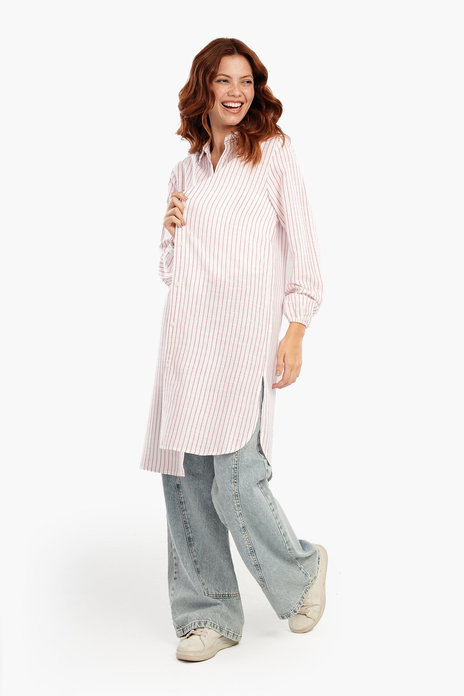 Effortlessly stylish and versatile, this shirt dress is a must-have for your wardrobe. Featuring a timeless striped pattern and a collared neck, it strikes the perfect balance between classic and contemporary. The button-down closure with a full placket offers a structured silhouette, while the long sleeves with elastic cuffs provide comfort and a touch of detail. Designed with a knee-length cut, round hem, and side slits, this dress flatters your figure while allowing easy movement. With its regular fit, it’s both chic and comfortable, ideal for various occasions.