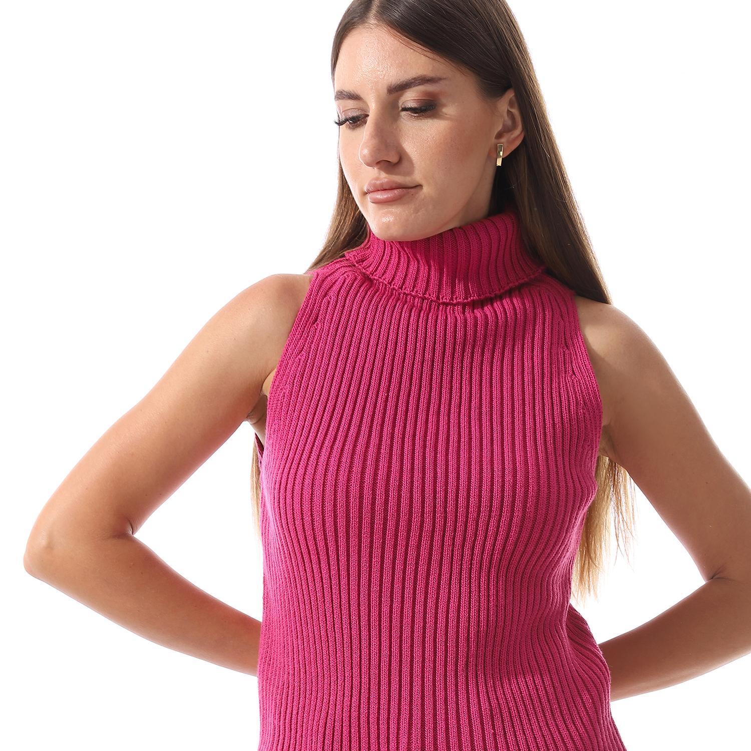 Wool Crew Neck Sleeveless Pullover - Pink
