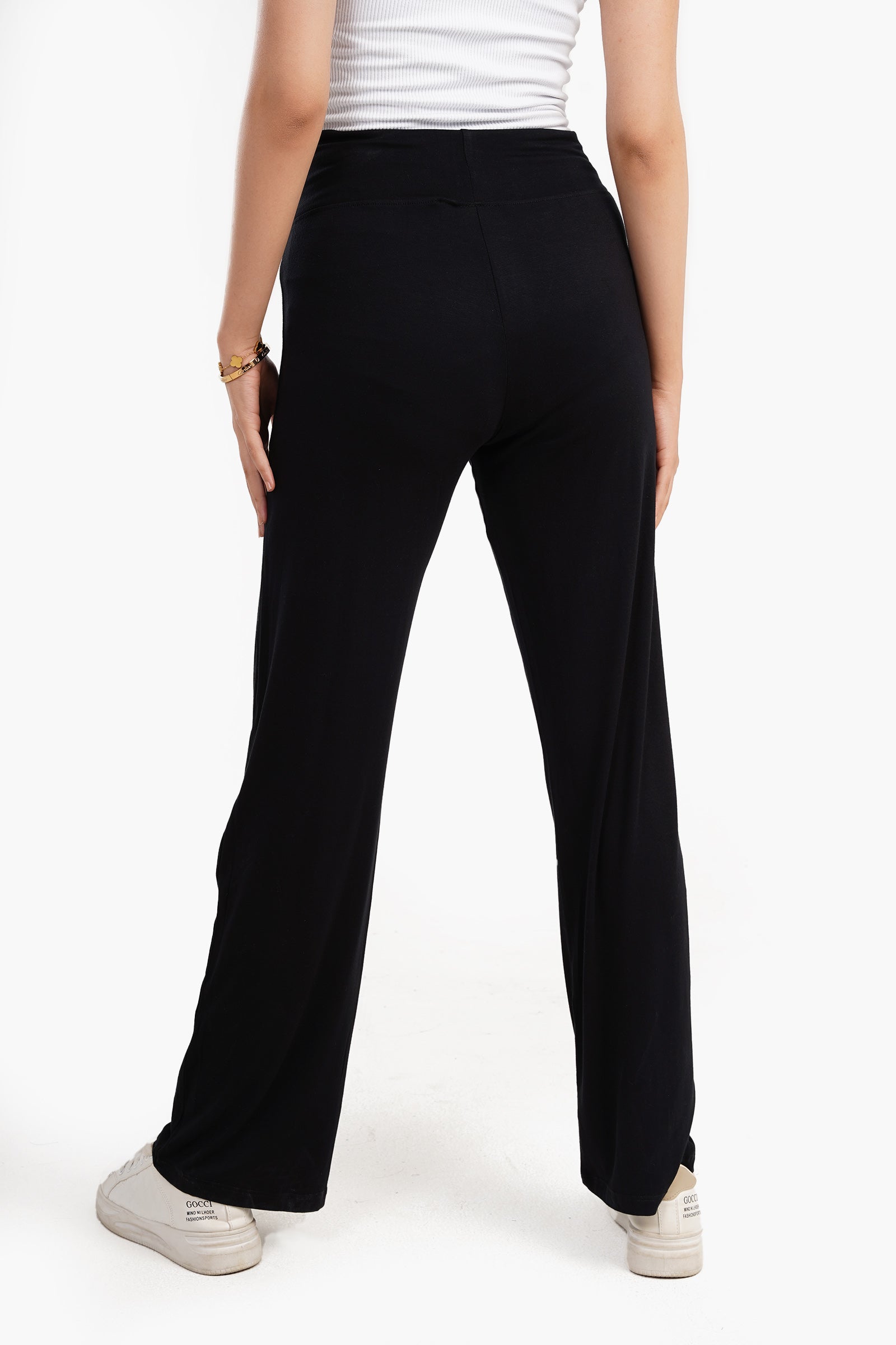- Elevate your wardrobe with our Black Viscose Flared Pants, featuring a wide high elastic waist for a comfortable and flattering fit. Crafted from soft viscose fabric, these pants are designed to keep you comfortable and stylish all day long. The flared cut adds a touch of retro flair to your outfit, while the wide high elastic waist provides a secure and comfortable fit. Pair these pants with a tucked-in blouse or a cropped top for a chic and fashionable look.