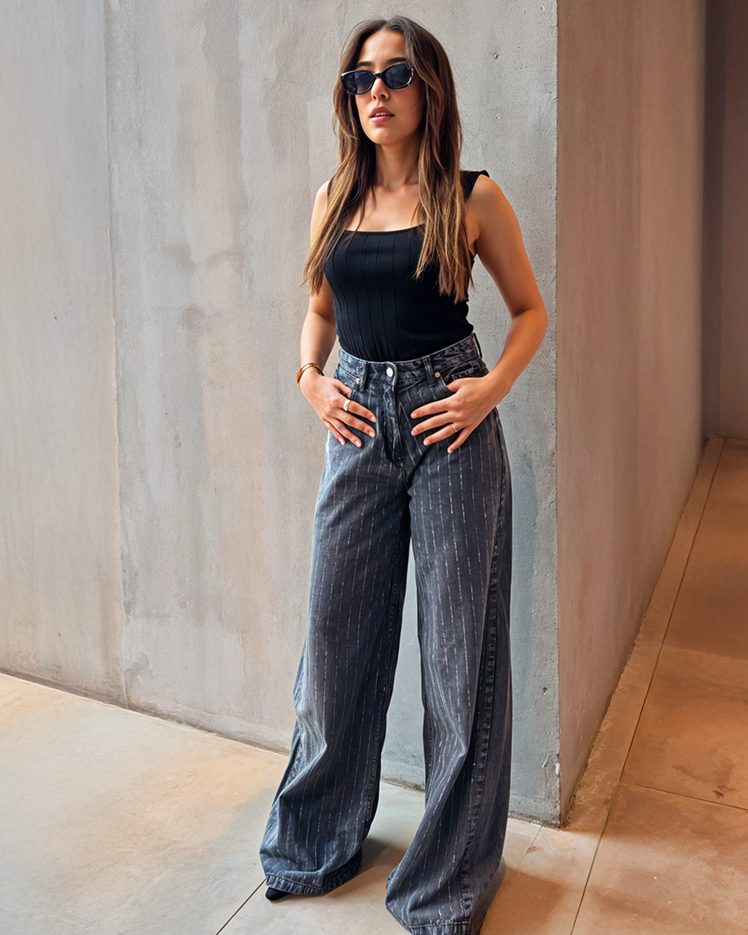 Details & Design Elements: Vertical bling embellishments on front only, practical cut for comfort and style, clean back finish