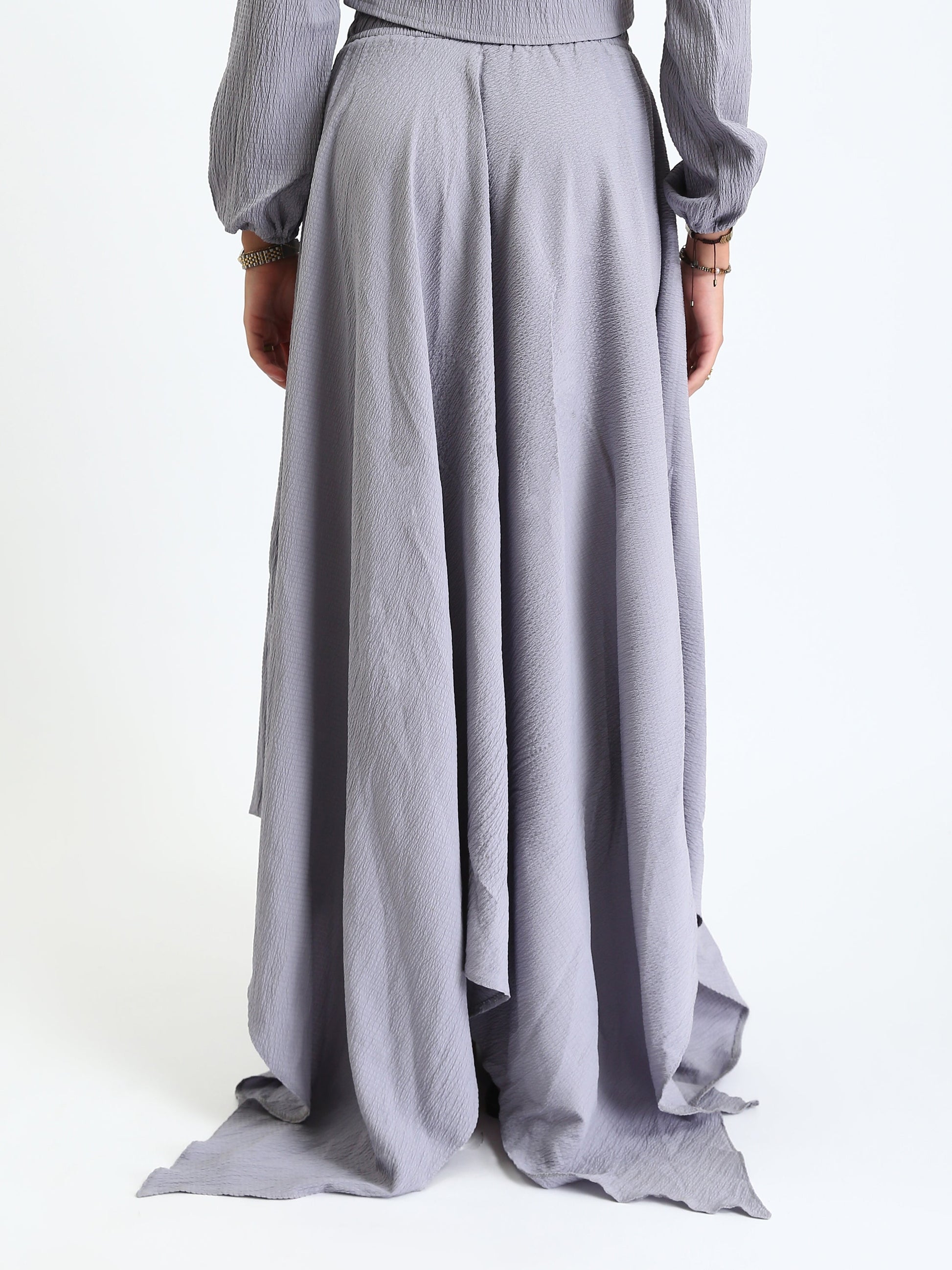 Synthetic Cropped Blouse & Flow Skirt - Grey