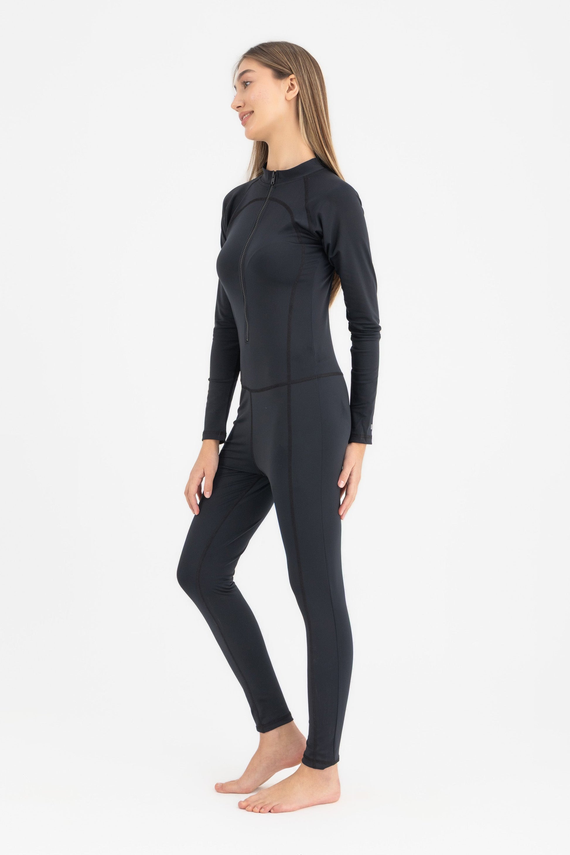Bottom Design & Fit: Fitted leggings integrated into one-piece suit for streamlined comfort