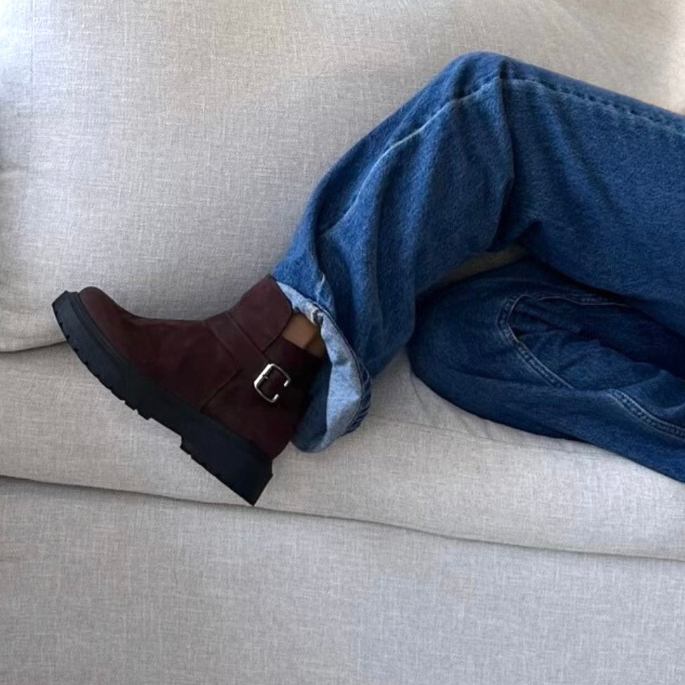 These Biker half boots are your go-to boots this season. So On Trend & Comfy with everyday winter fits! featuring warm Velvet inner lining and Brown suede leather to combat winter weather and make you feel fabulous!