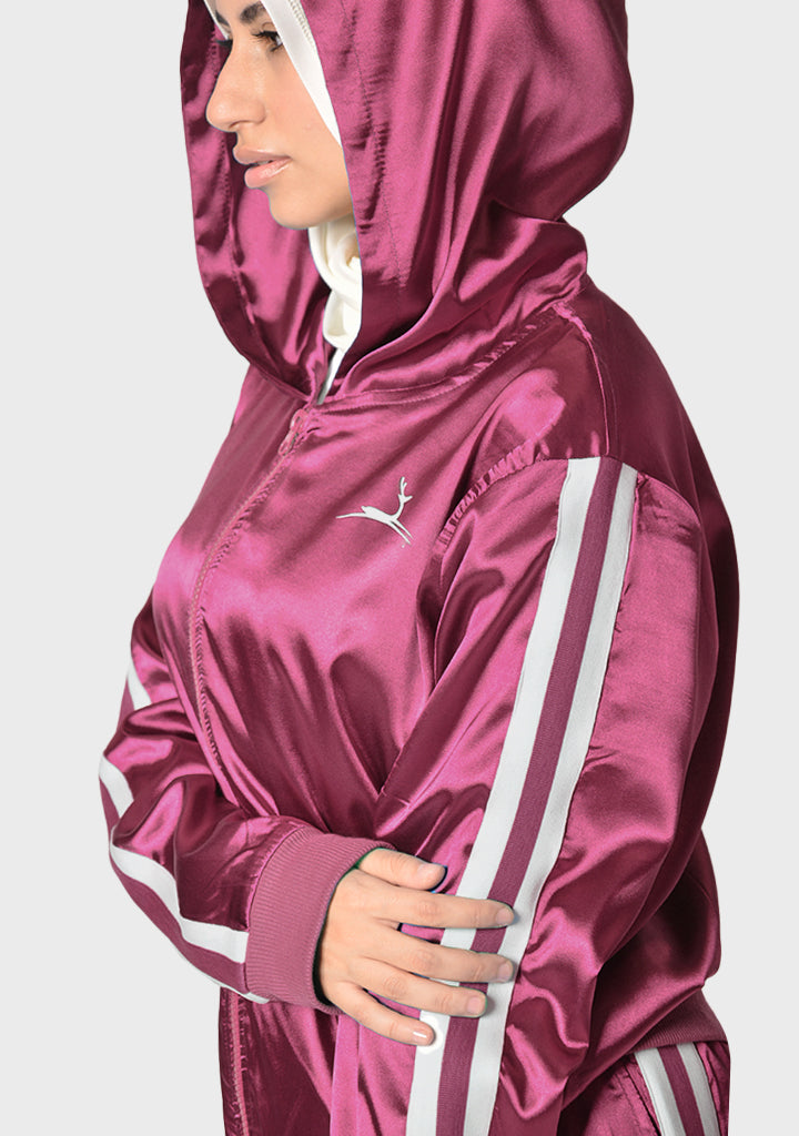 - Top Design & Fit: Hooded zip-up jacket with relaxed fit and striped sleeves
