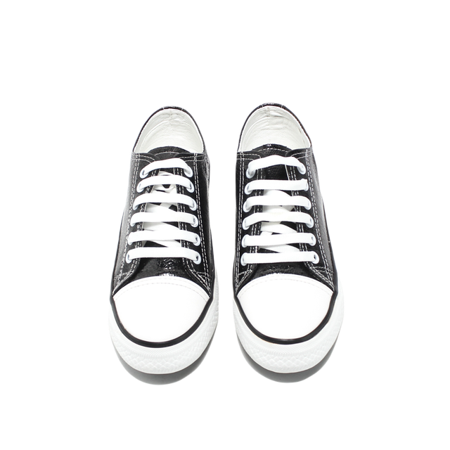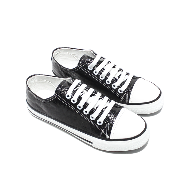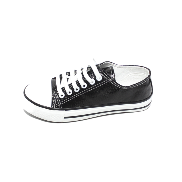 Shiny Faux leather Comfortable Sneakers - Black