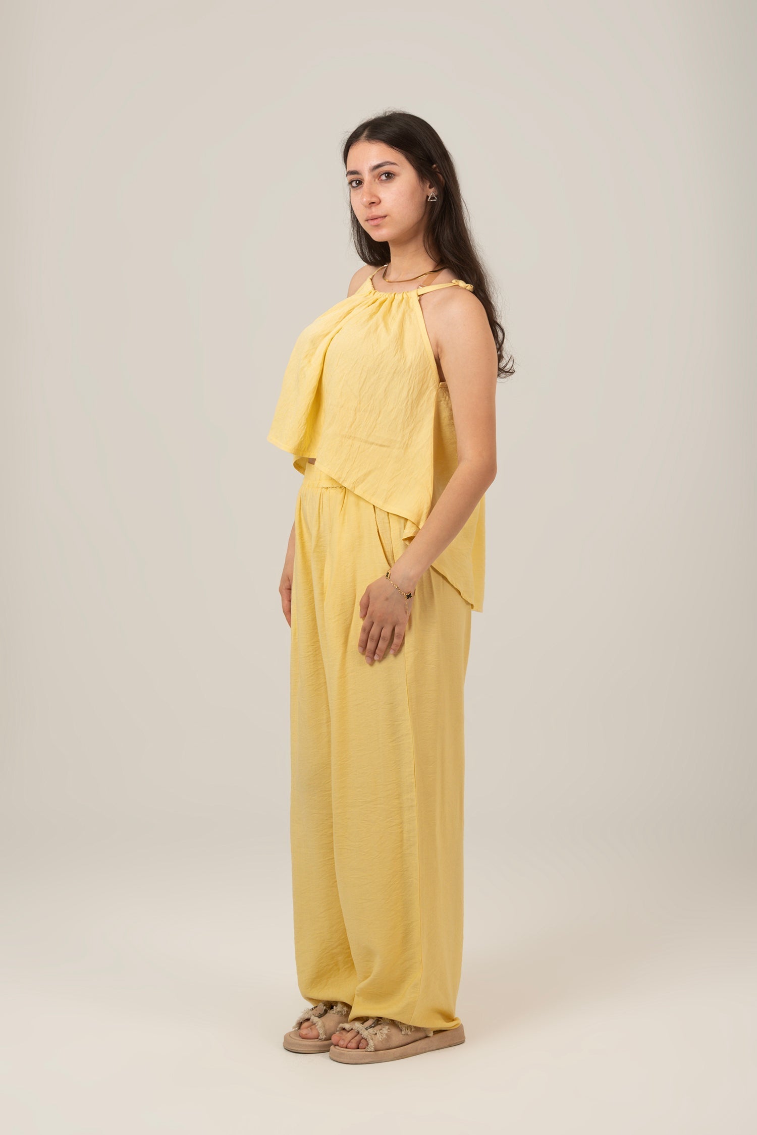 Top Design & Fit: Sleeveless halter neck top with flowy, relaxed fit