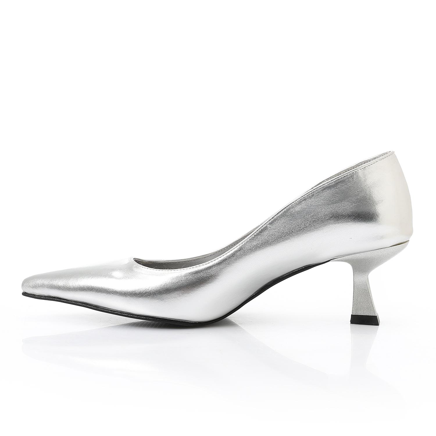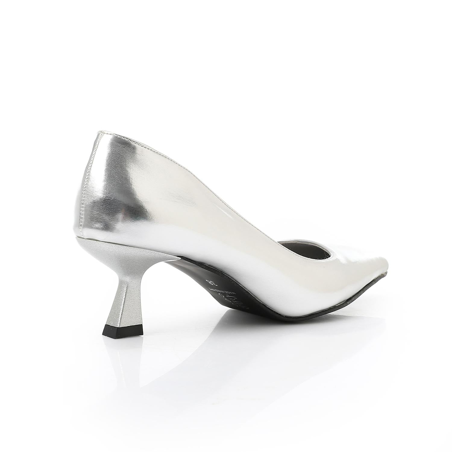 Leather Solid Pointed-Toe Pumps – Silver