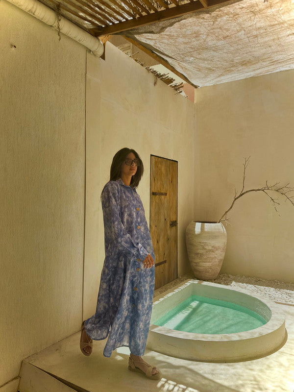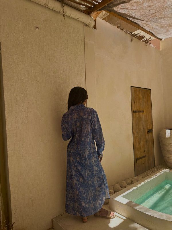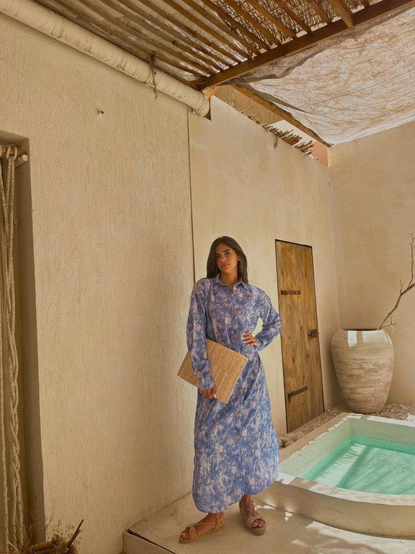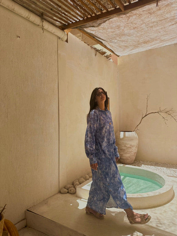 Linen Tie-Dye Shirt Dress – Jeans Blue