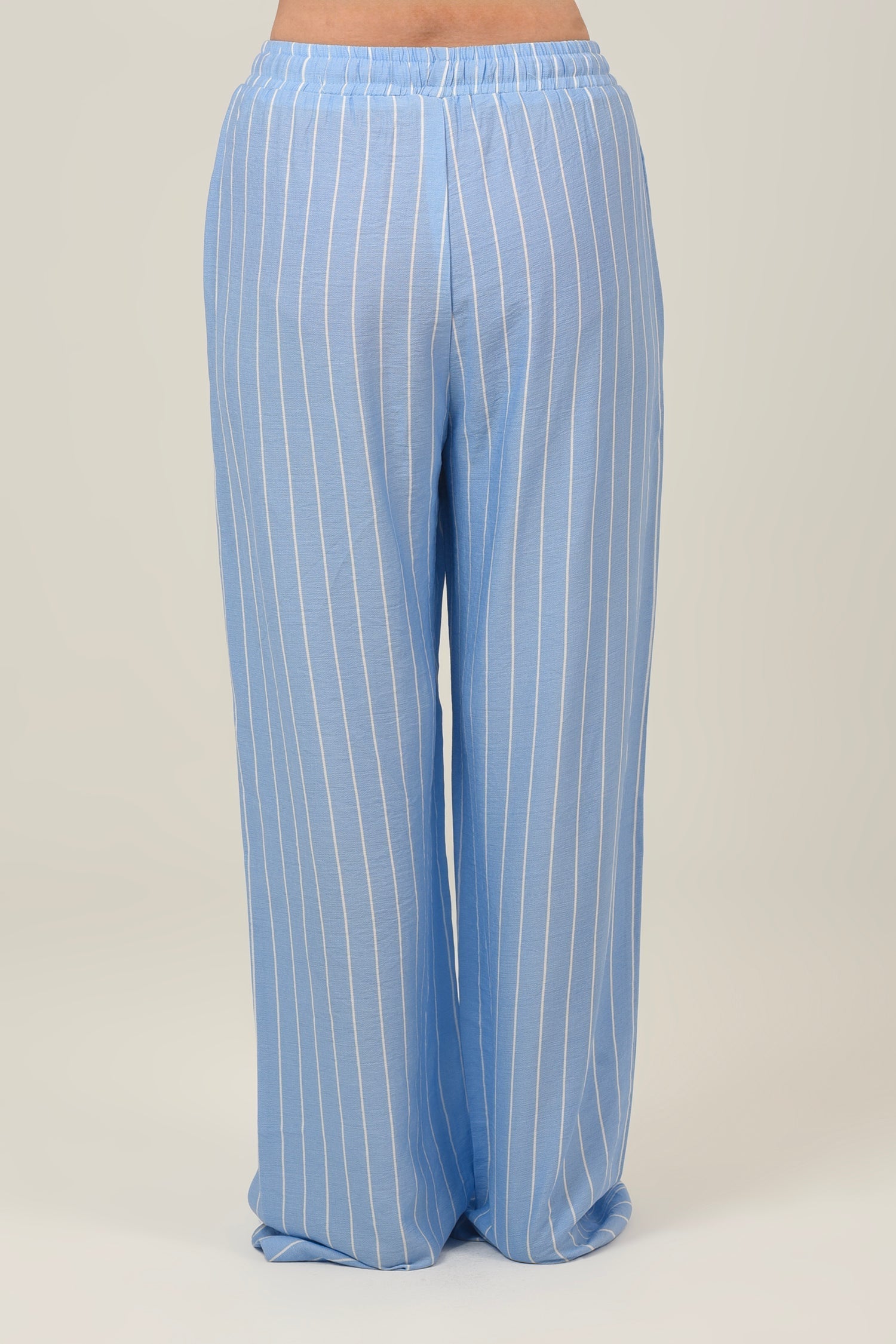 Linen Loose Striped High Waist Pants - Sky Blue