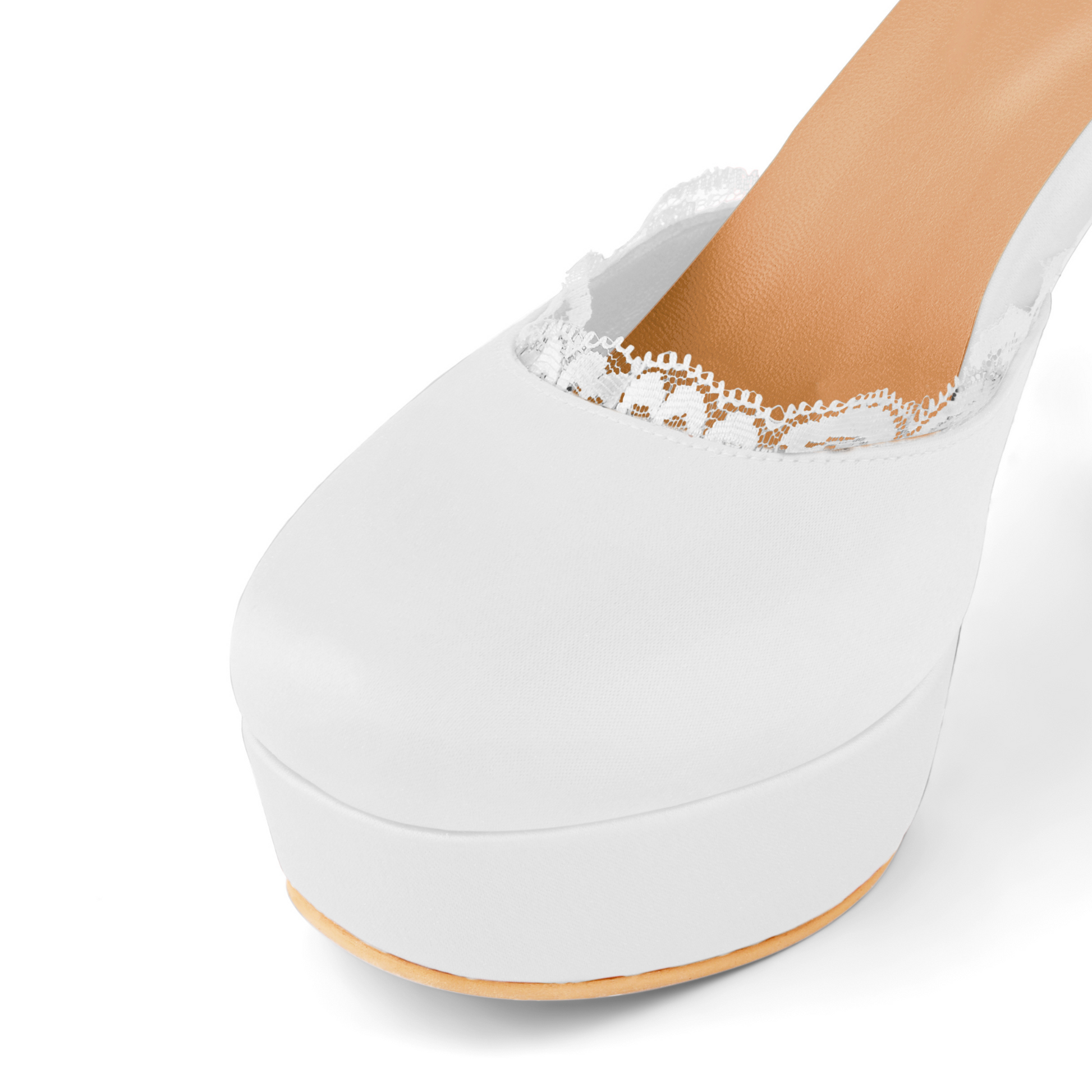 The ultimate elegance and romance MISTICA, Our new platforms are meticulously crafted in shimmer satin and adorned with statement-making lace, ensuring exceptional glamour moments for your special days.