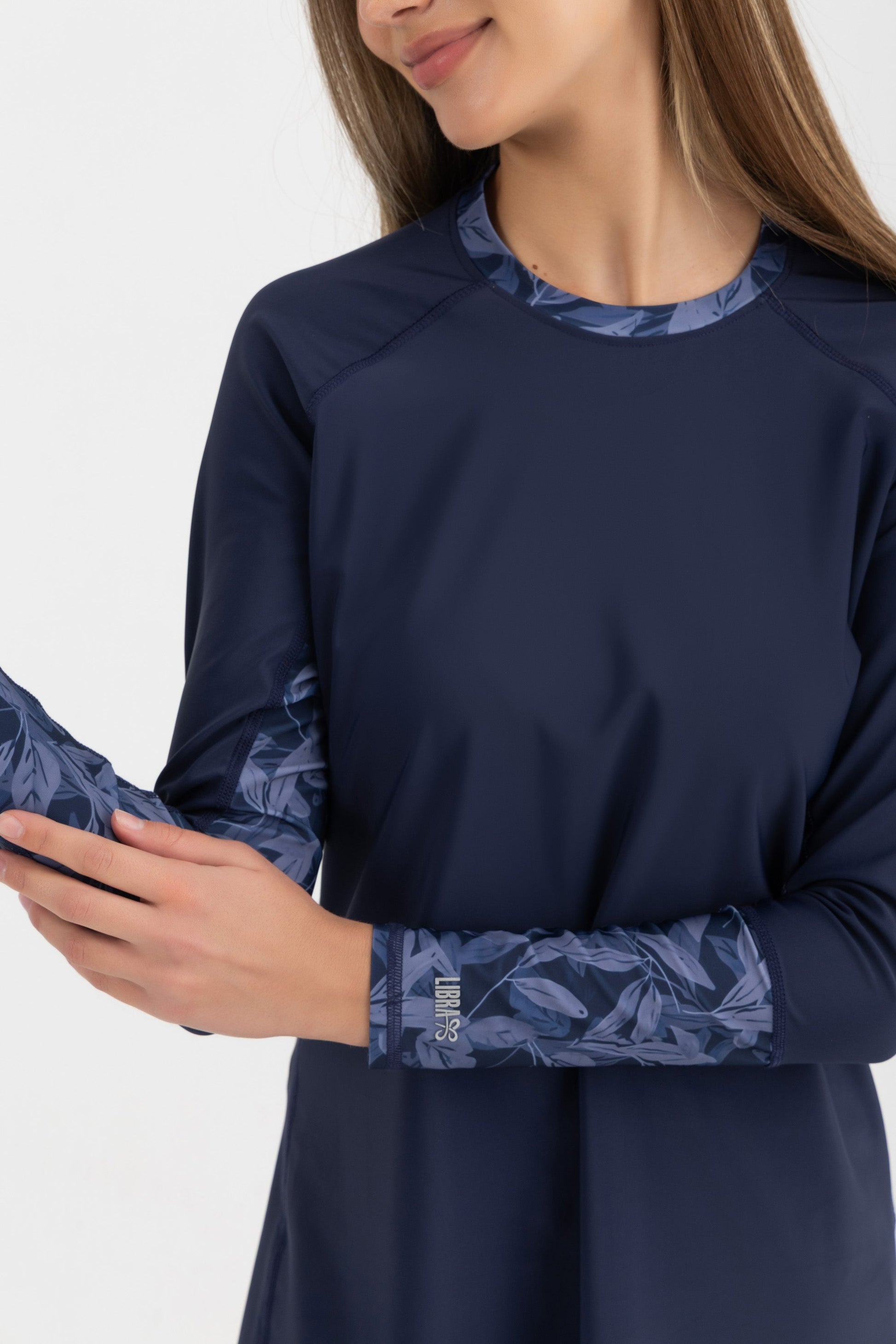 Top Design & Fit: Long-sleeve modest swim tunic with printed sleeve cuffs
