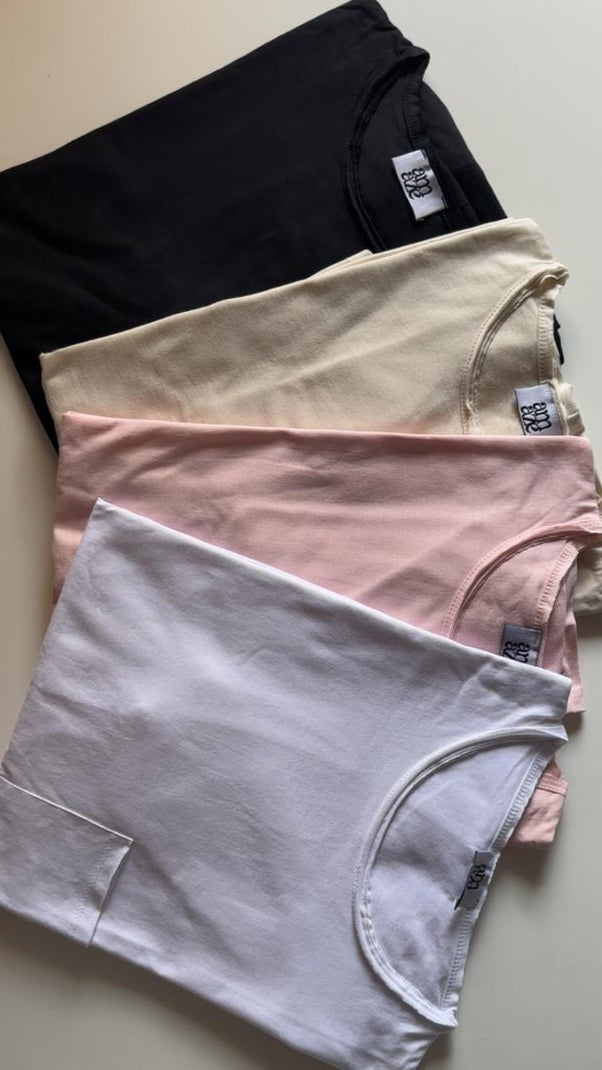 - Design: Oversized t-shirt with asymmetrical high-low hemline and chest patch pocket