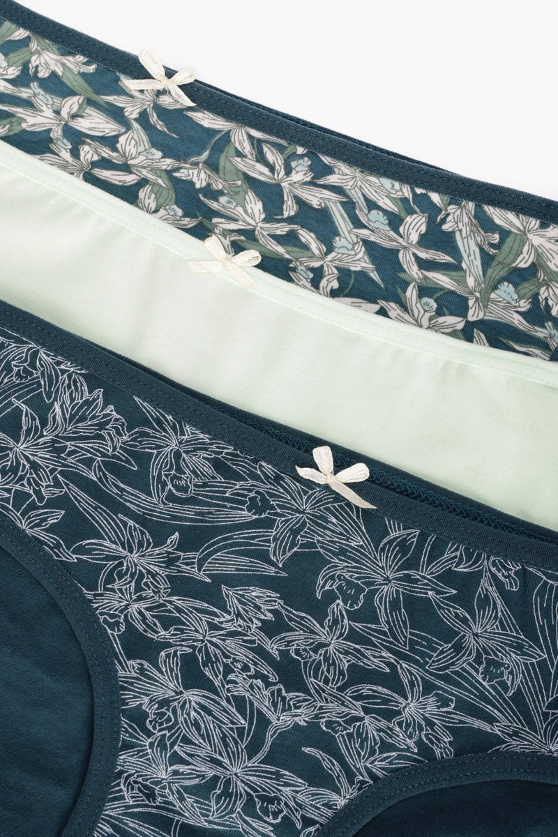 - Pack Details: Includes 3 assorted panties in coordinating tones and floral designs