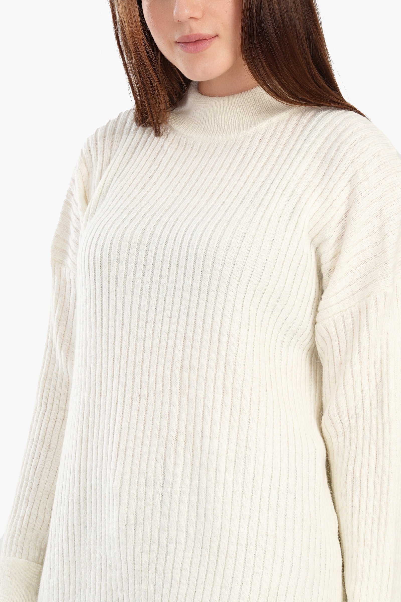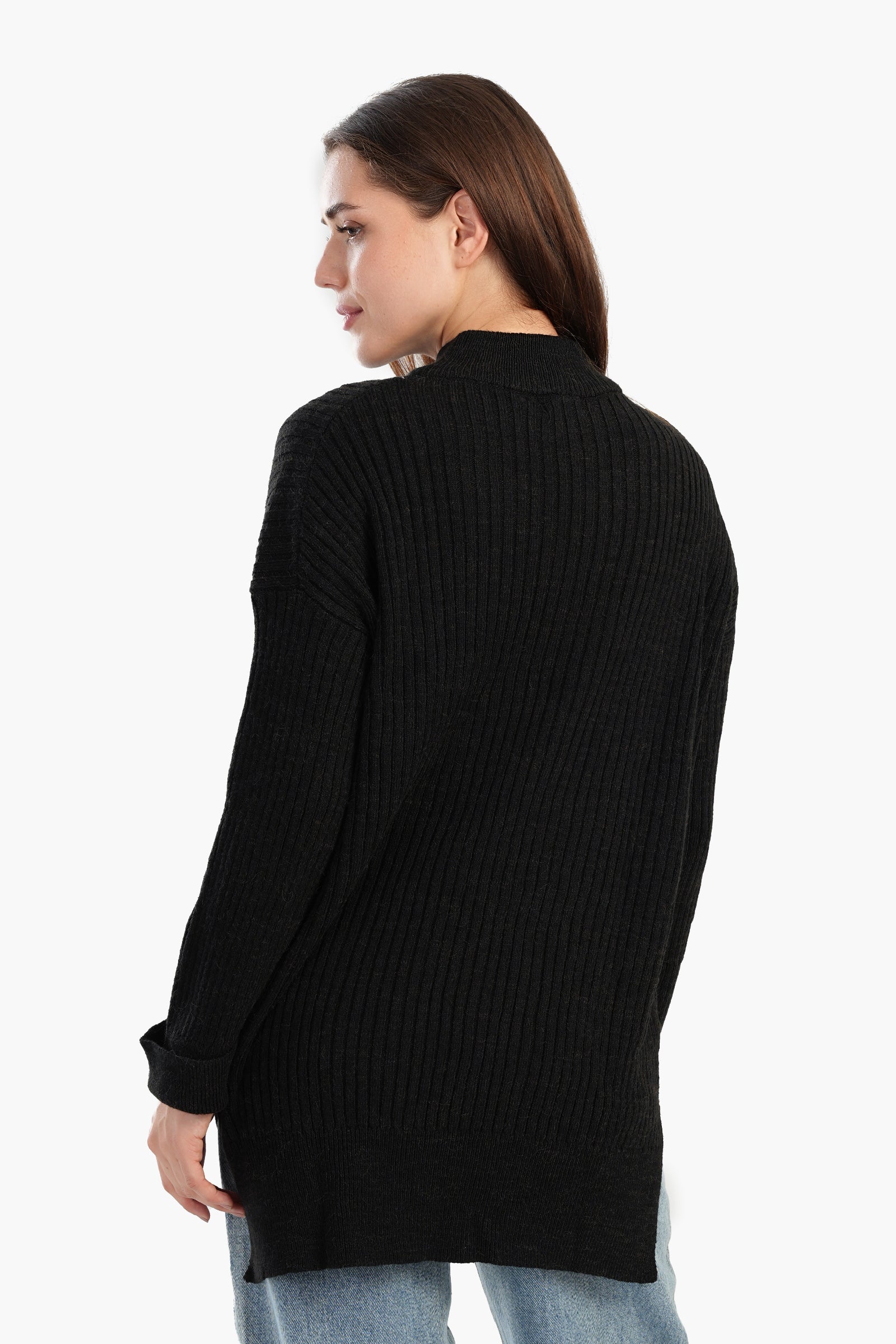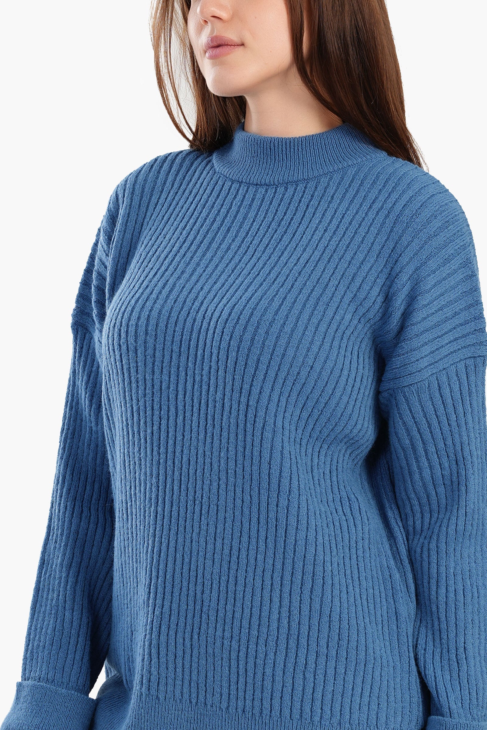 This cozy pullover is the perfect blend of comfort and style, crafted from soft trico material with a relaxed fit that drapes effortlessly. The ribbed pattern adds texture, while the classic turtleneck design keeps you warm and chic throughout the colder months. The pullover features long sleeves with dropped shoulders, giving it a laid-back yet stylish look. Rolled cuffs provide a casual, modern touch, while the side slits offer ease of movement and a flattering fit.