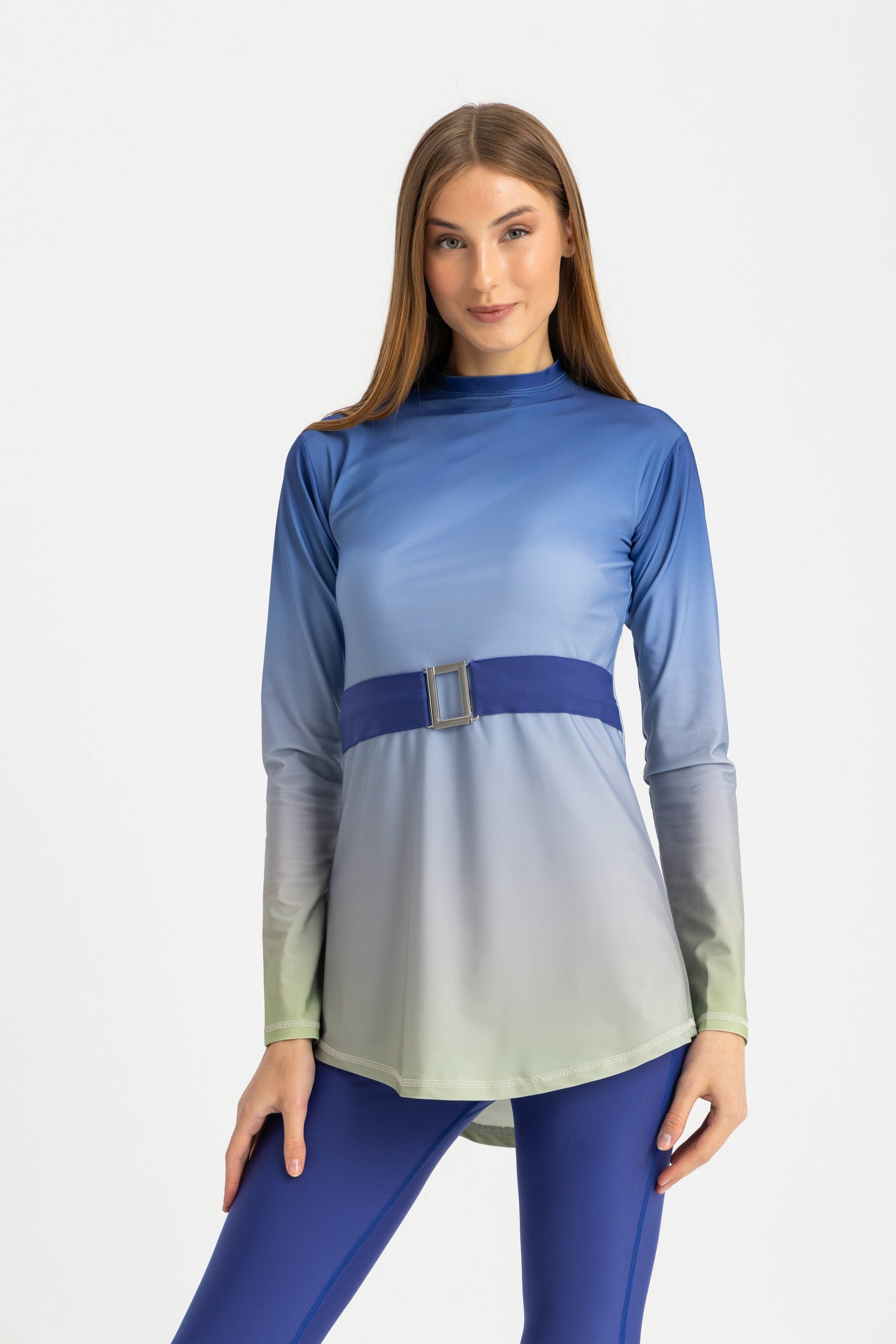 Top Design & Fit (for sets) / Overall Fit (for one-piece): Longline swim tunic with tailored fit, flatters the waist with a sleek silhouette