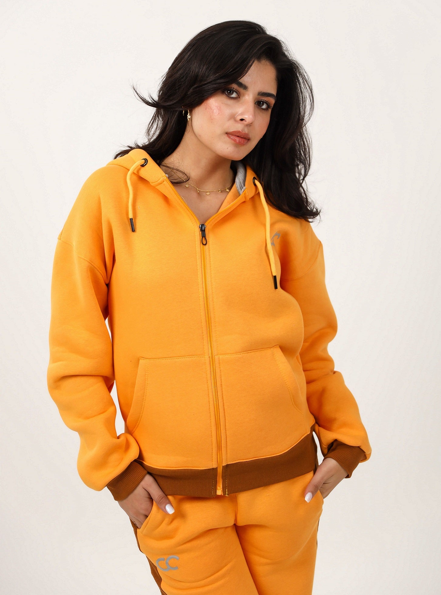 Elevate your style with Shechick's Two-Tone Mustarad Zipper Hoodie. This trendy hoodie features a unique two-tone design in shades of Mustarad, adding a touch of vibrancy to your outfit.