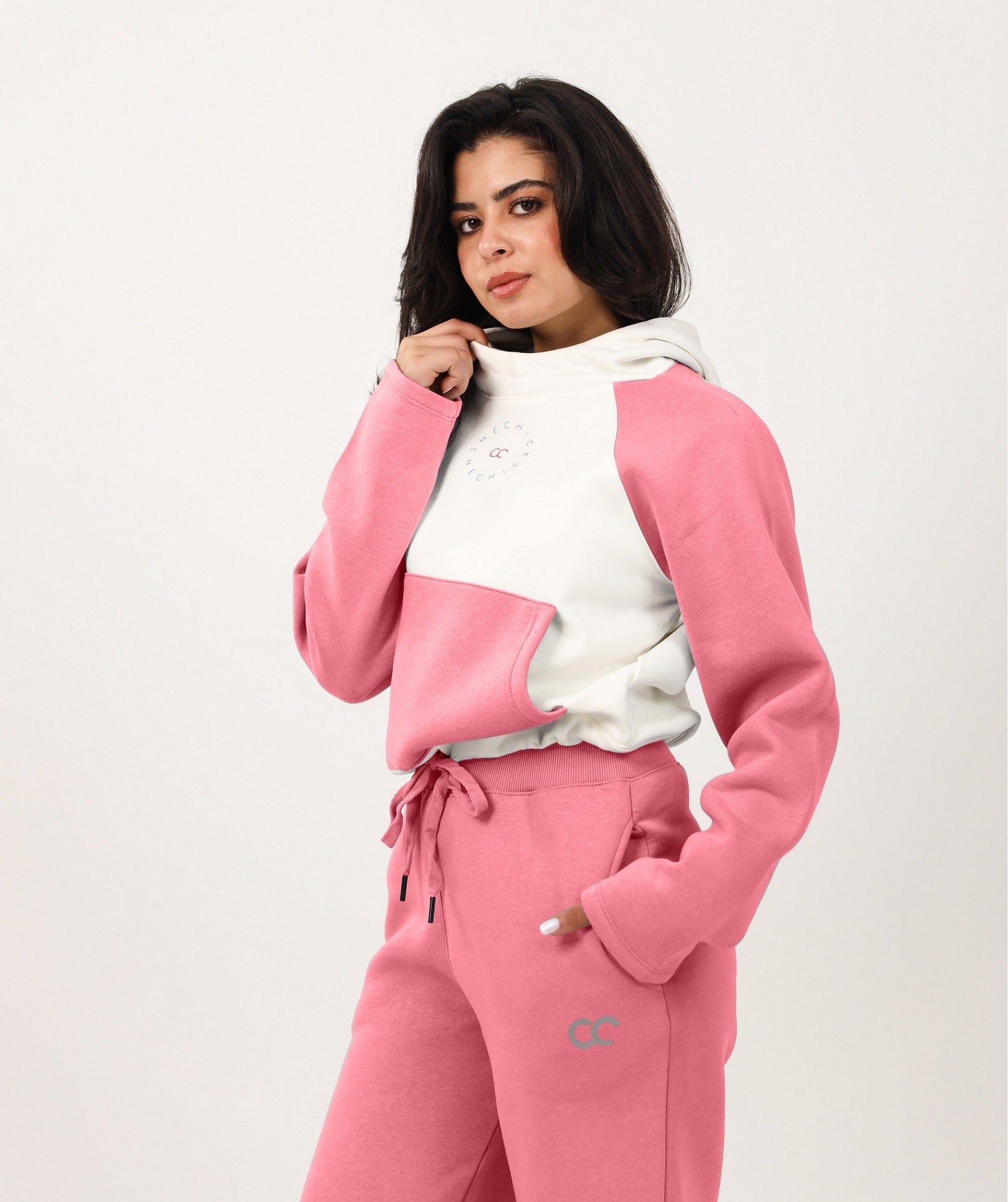 Step into style with Shechick's White & Dusty Pink Cropped Hoodie. This eye-catching hoodie features a trendy white and Dusty Pink color combination, perfect for adding a pop of color to your outfit.