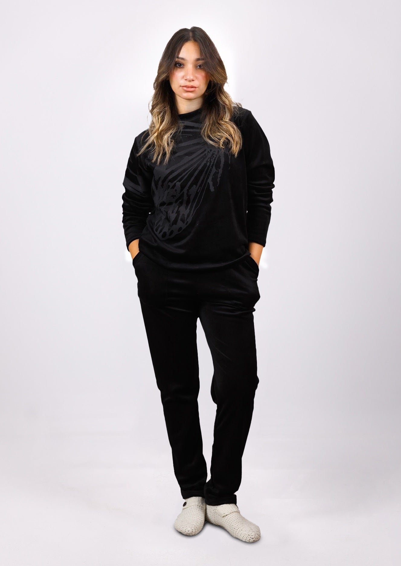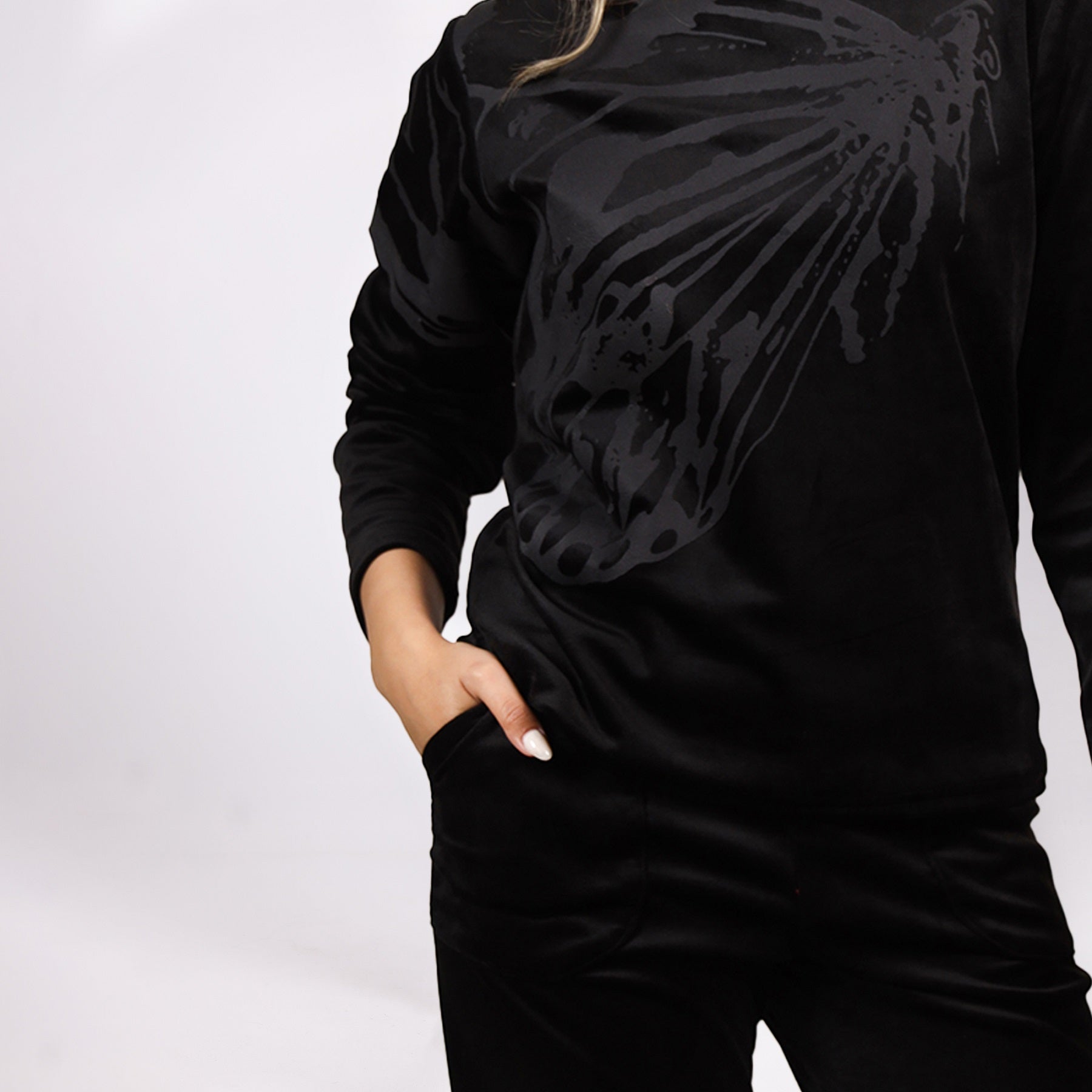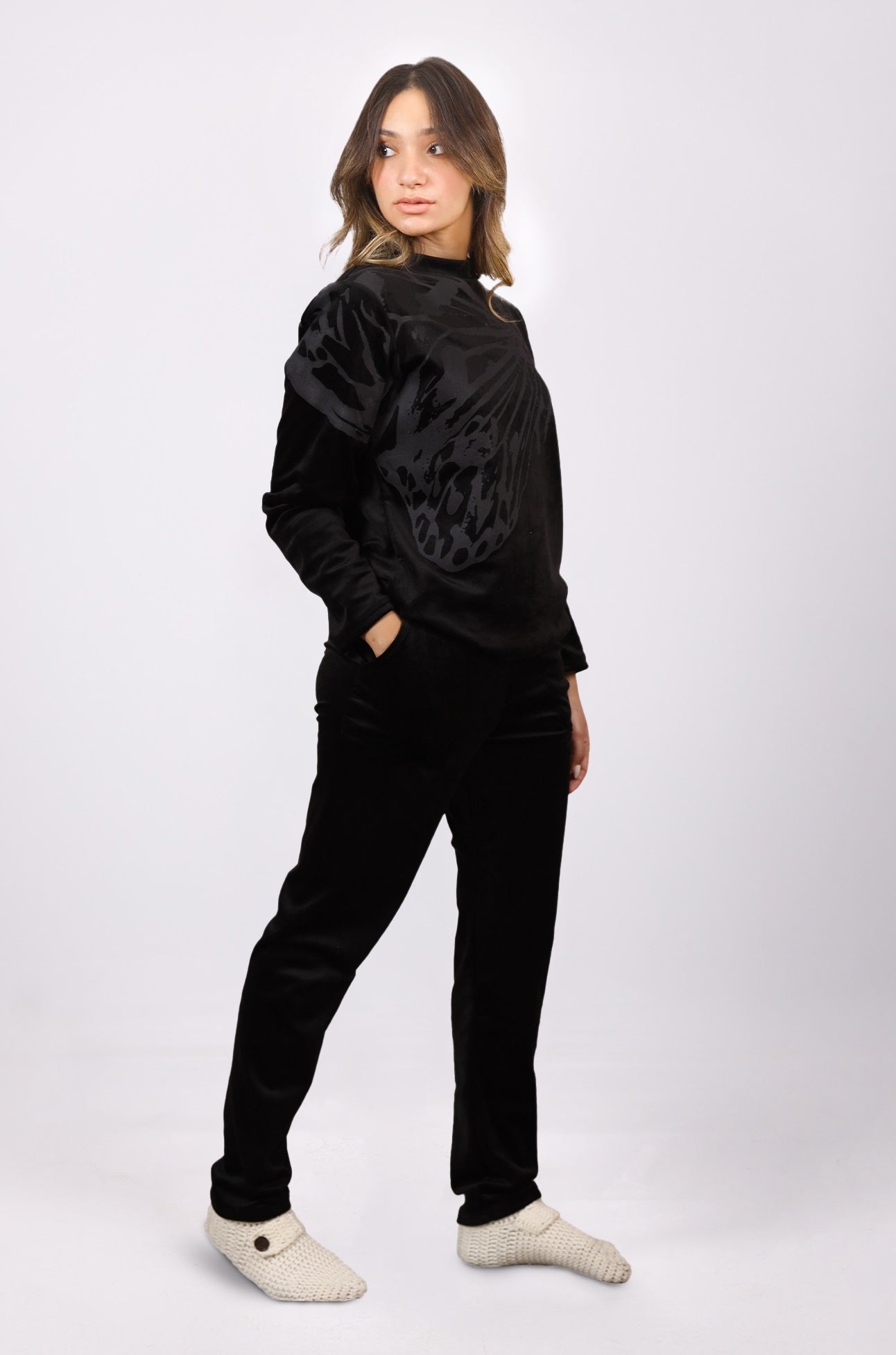 The Shechick Butterfly Dreams Black Pajama Set is a delightful blend of elegance and whimsy. This set features a black pajama top adorned with beautiful butterfly patterns, paired with matching pants for a coordinated look.