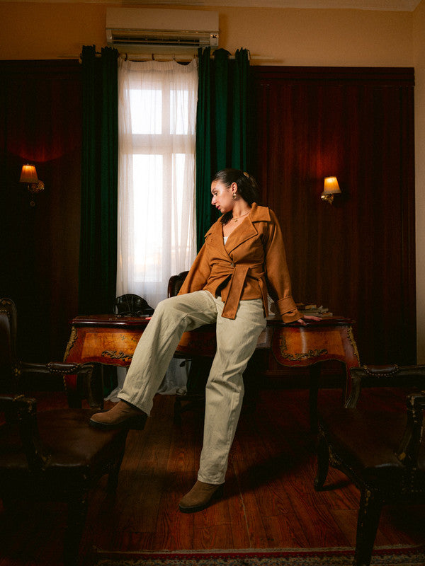 Suede Belted Wrap Jacket – Beige