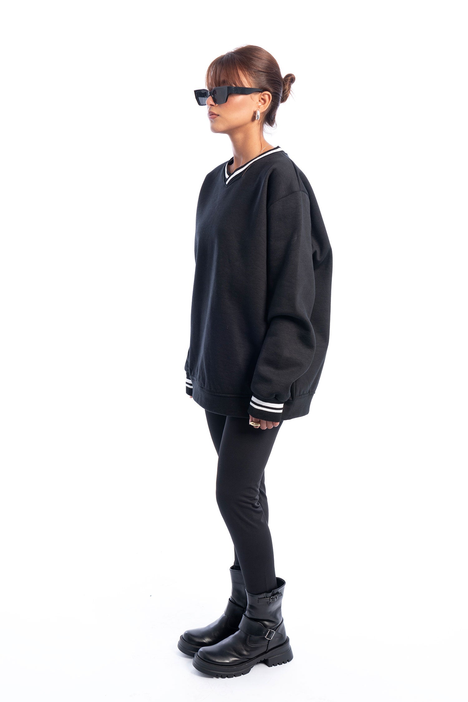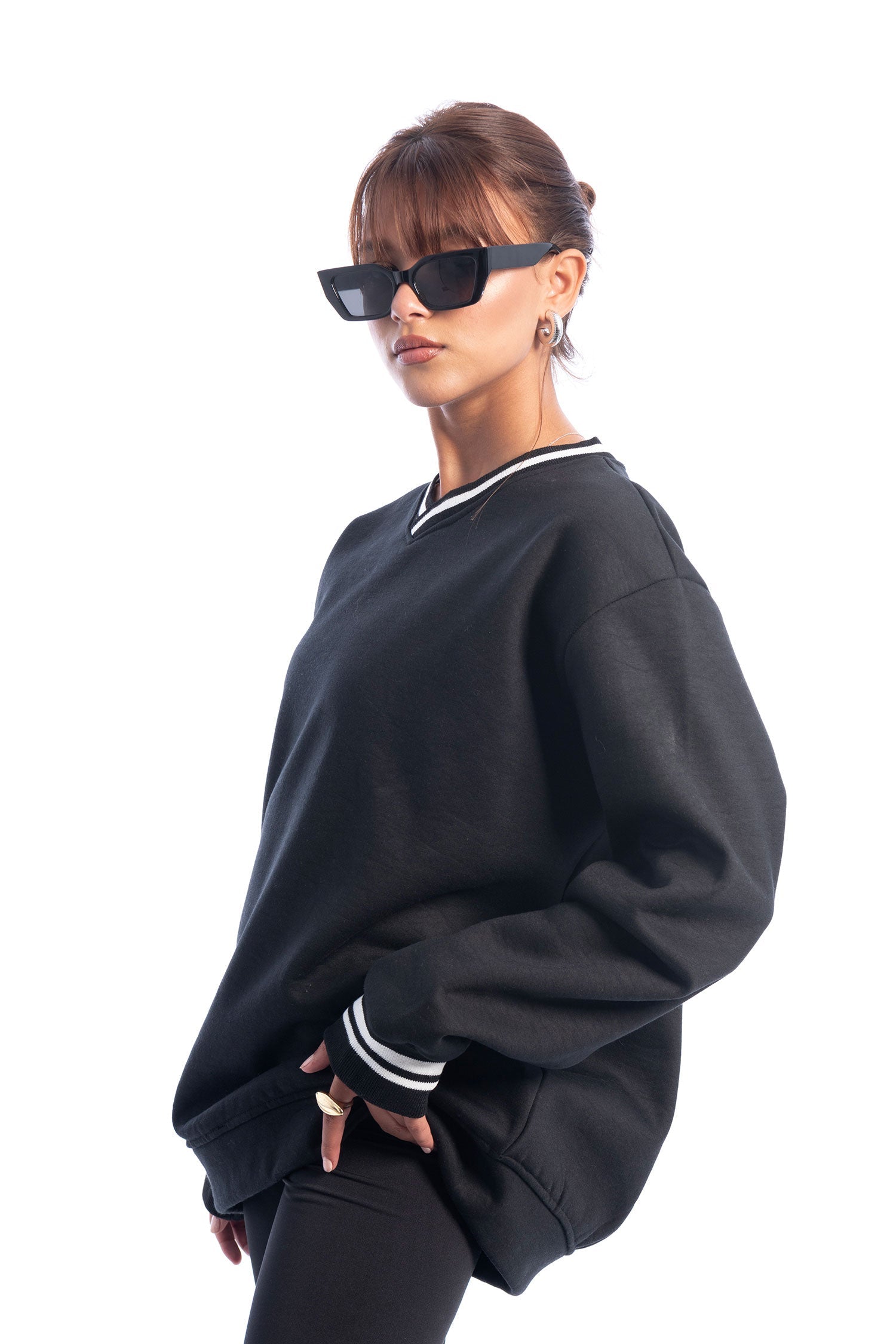 | Striped Drop Sweatshirt With Contrast Trim, Long Sleeve Sweater Length 70 CM |