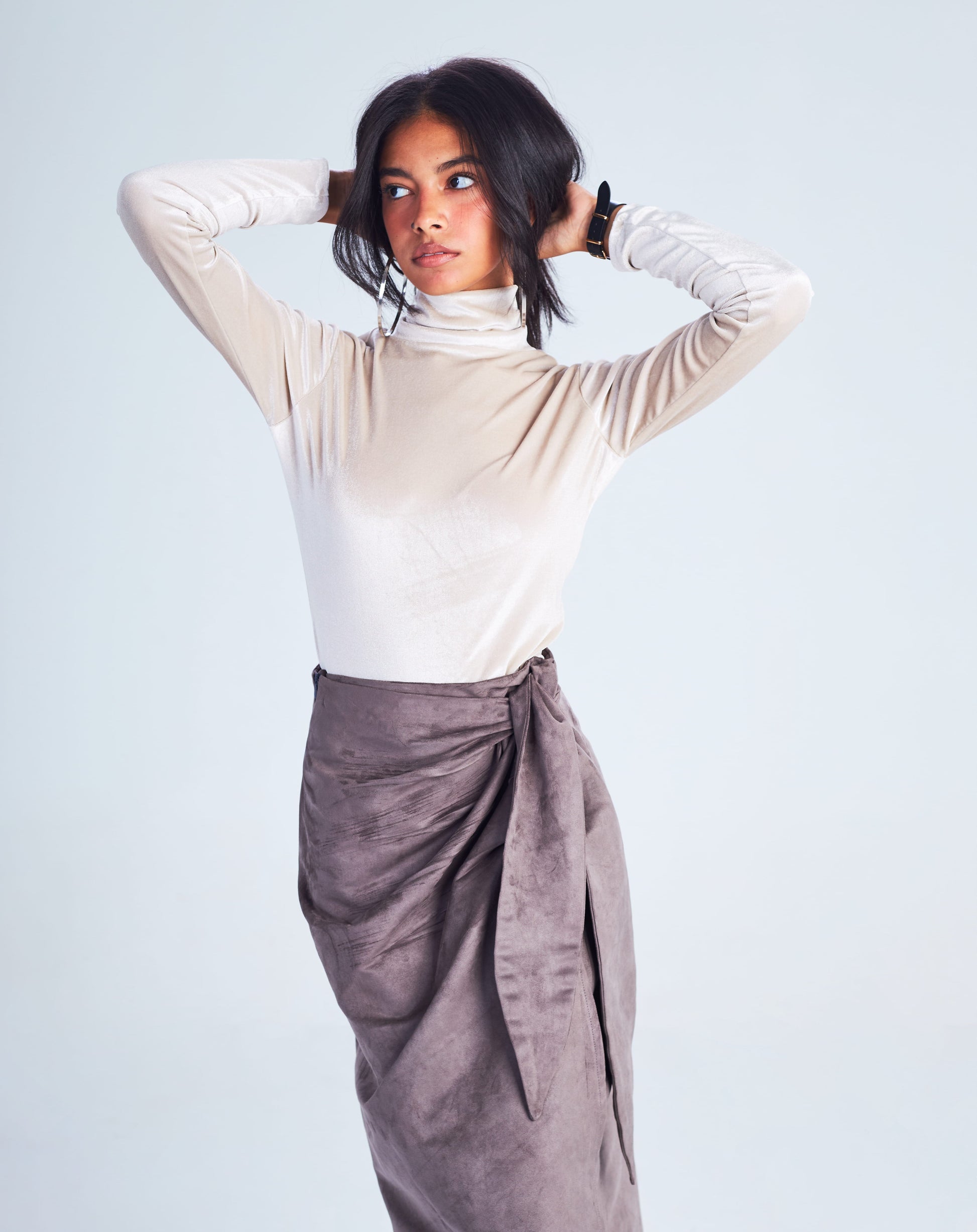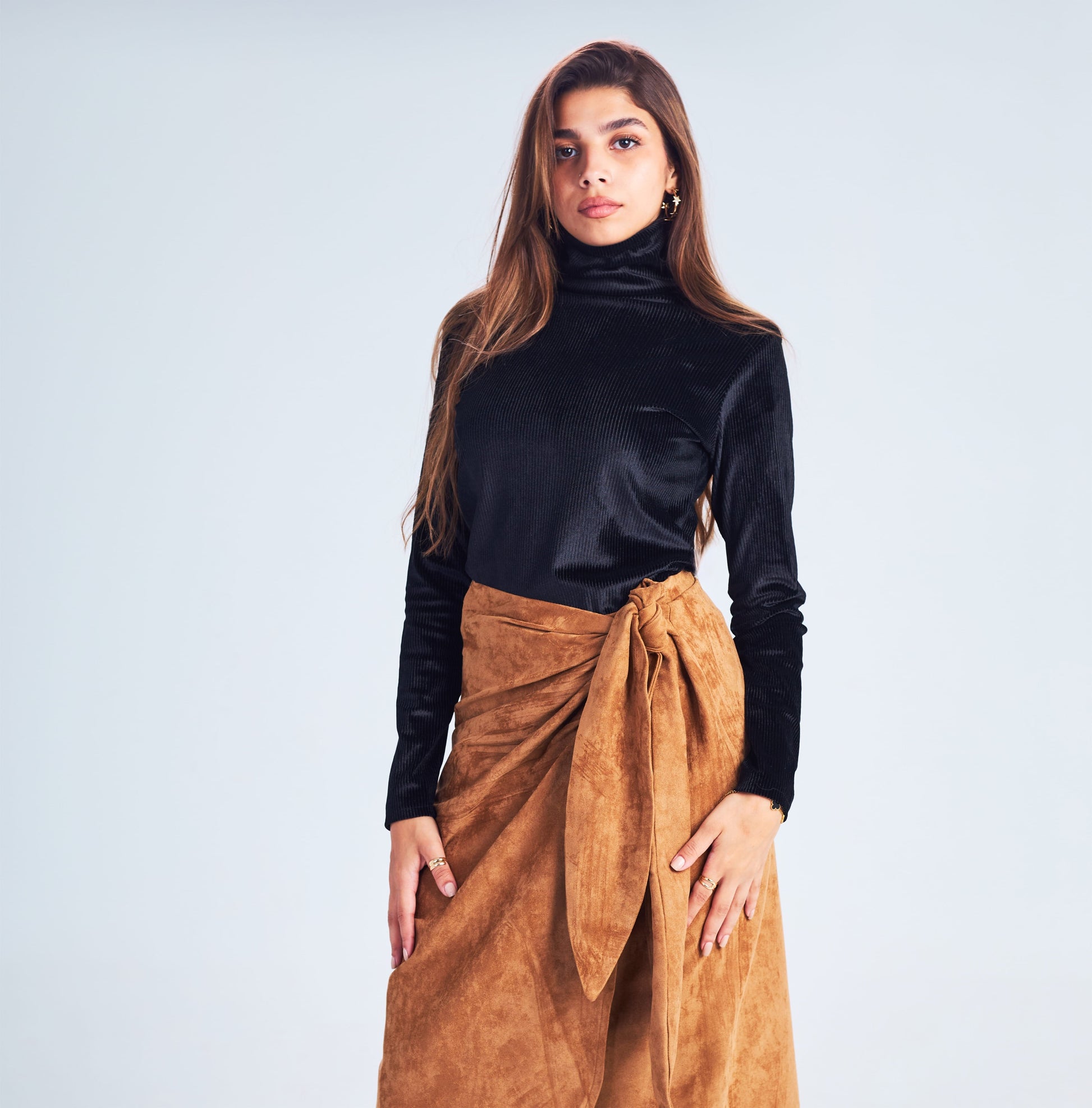 Made with soft velvet and featuring a trendy turtle neck and long sleeves, this top is perfect for the winter season.
