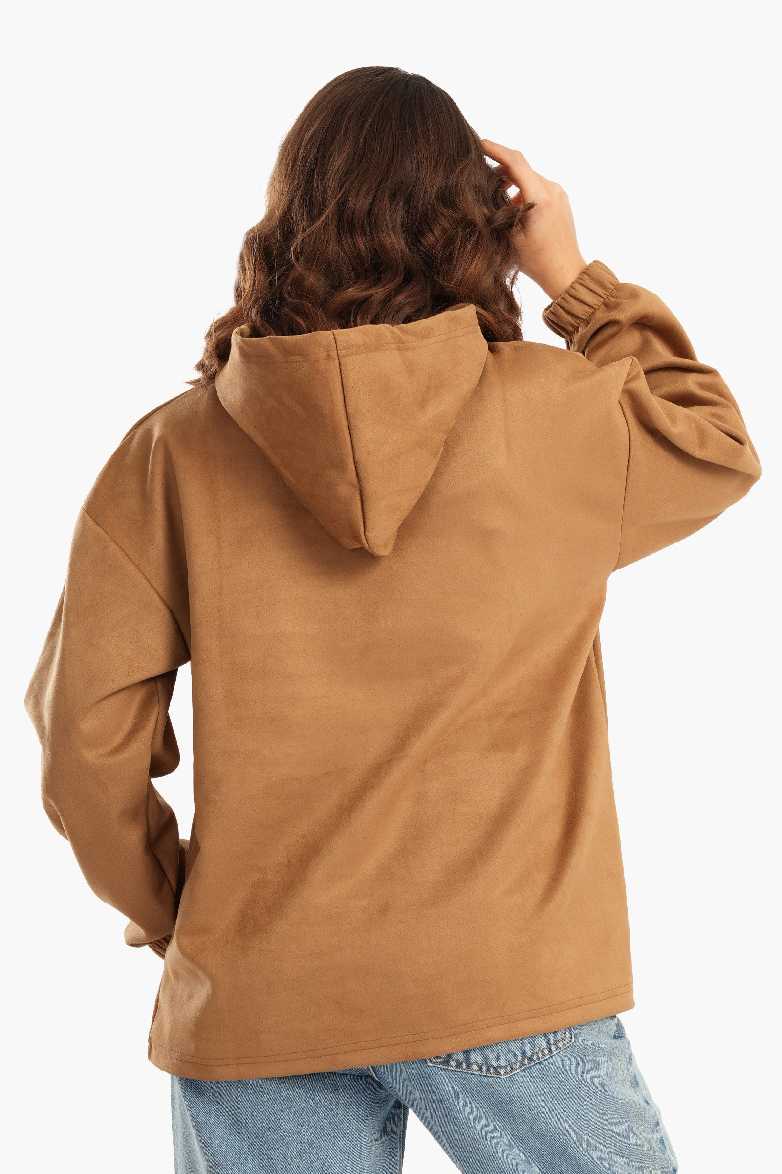 Featuring a hooded neck for added coziness, long sleeves with elastic cuffs for a secure fit, and two front slits for a stylish twist, this hoodie combines functionality with fashion. The convenient slip-on design makes it perfect for effortless wear, whether you're relaxing at home or stepping out for a casual outing.