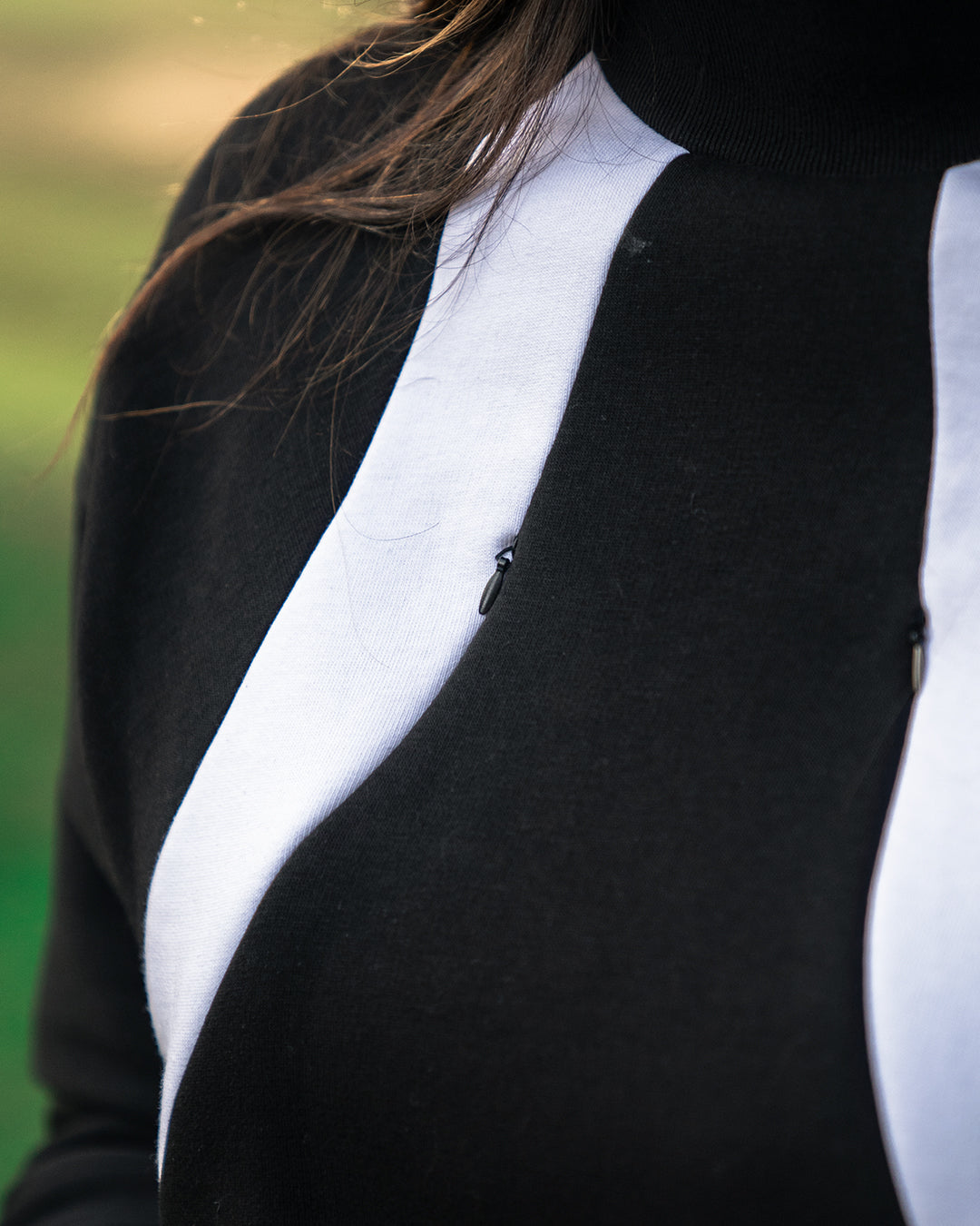 High-neck maternity sweatshirt with nursing access, side zippers, and a volcano-inspired design. Stylish and functional for every stage of motherhood.