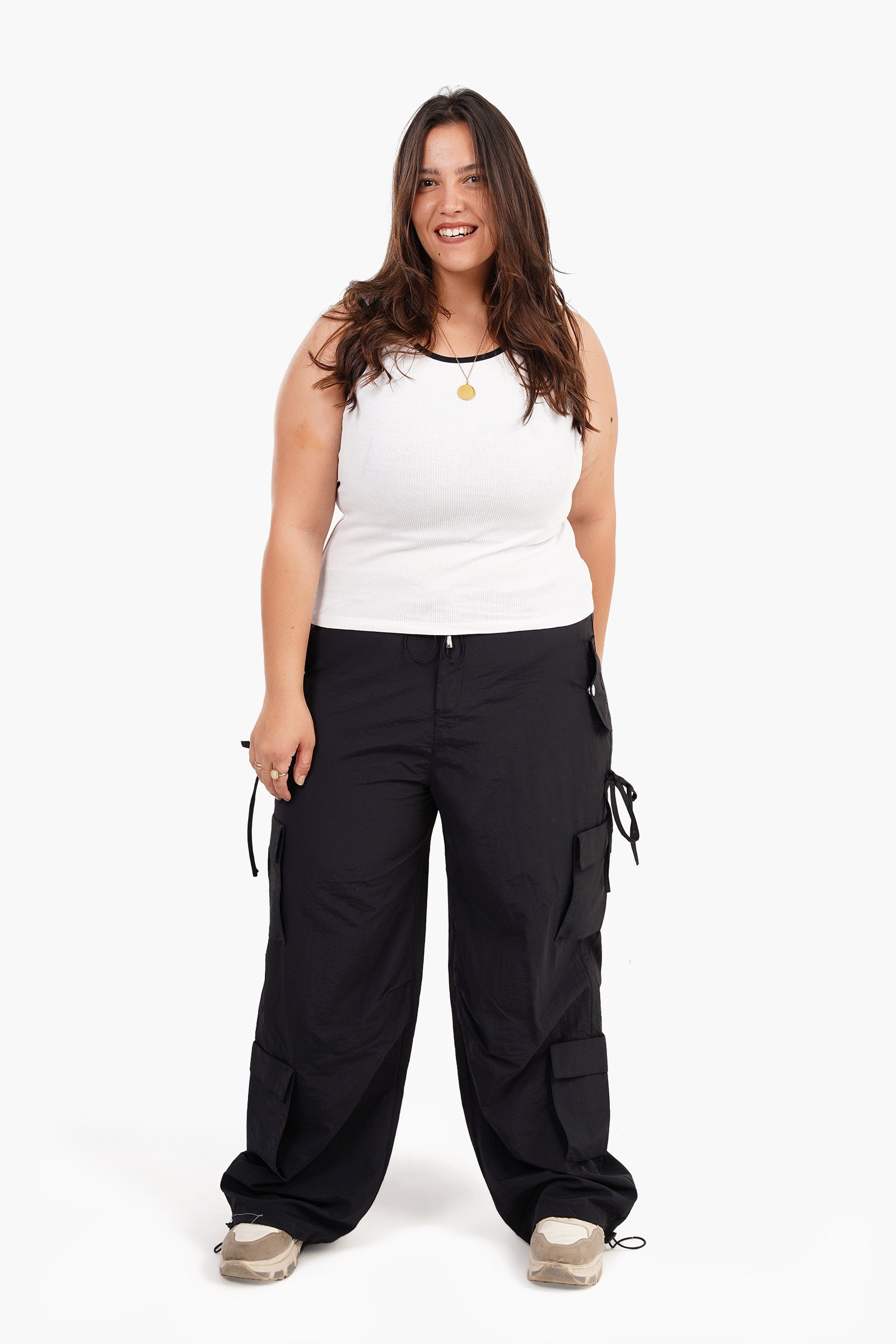 - Stay stylish and dry with our Waterproof Parachute Pants. These pants are not only practical but also fashionable, featuring a high waist and a snap and zip fly closure for a secure fit. The drawstring with adjustable cord adds a trendy touch while ensuring a comfortable fit. With four pockets, these pants are as functional as they are stylish, providing ample storage space for your essentials.
