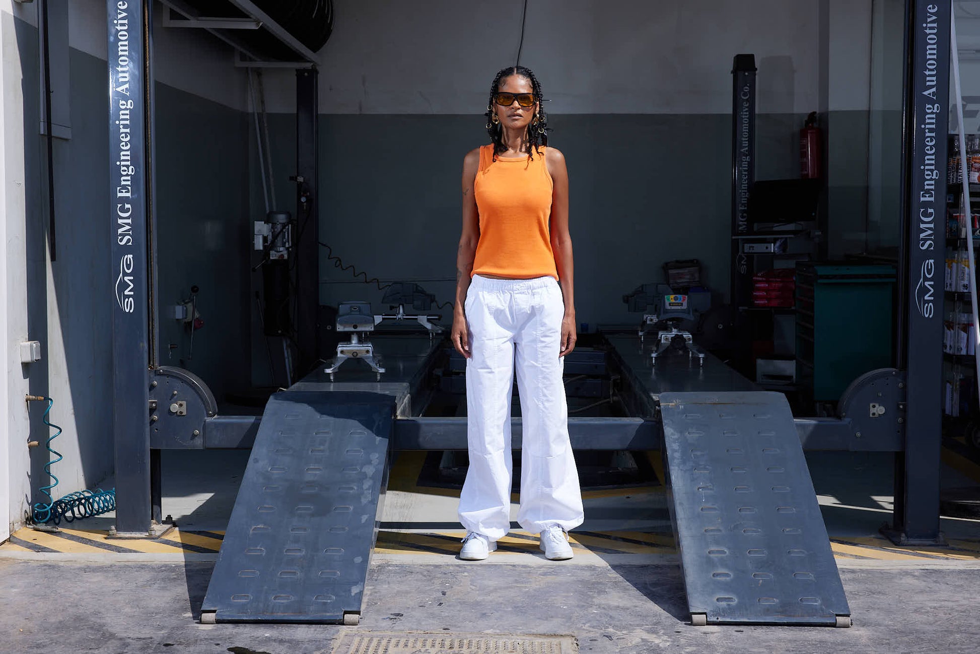 Details & Design Elements: Loose drape, wide silhouette, clean hem finish