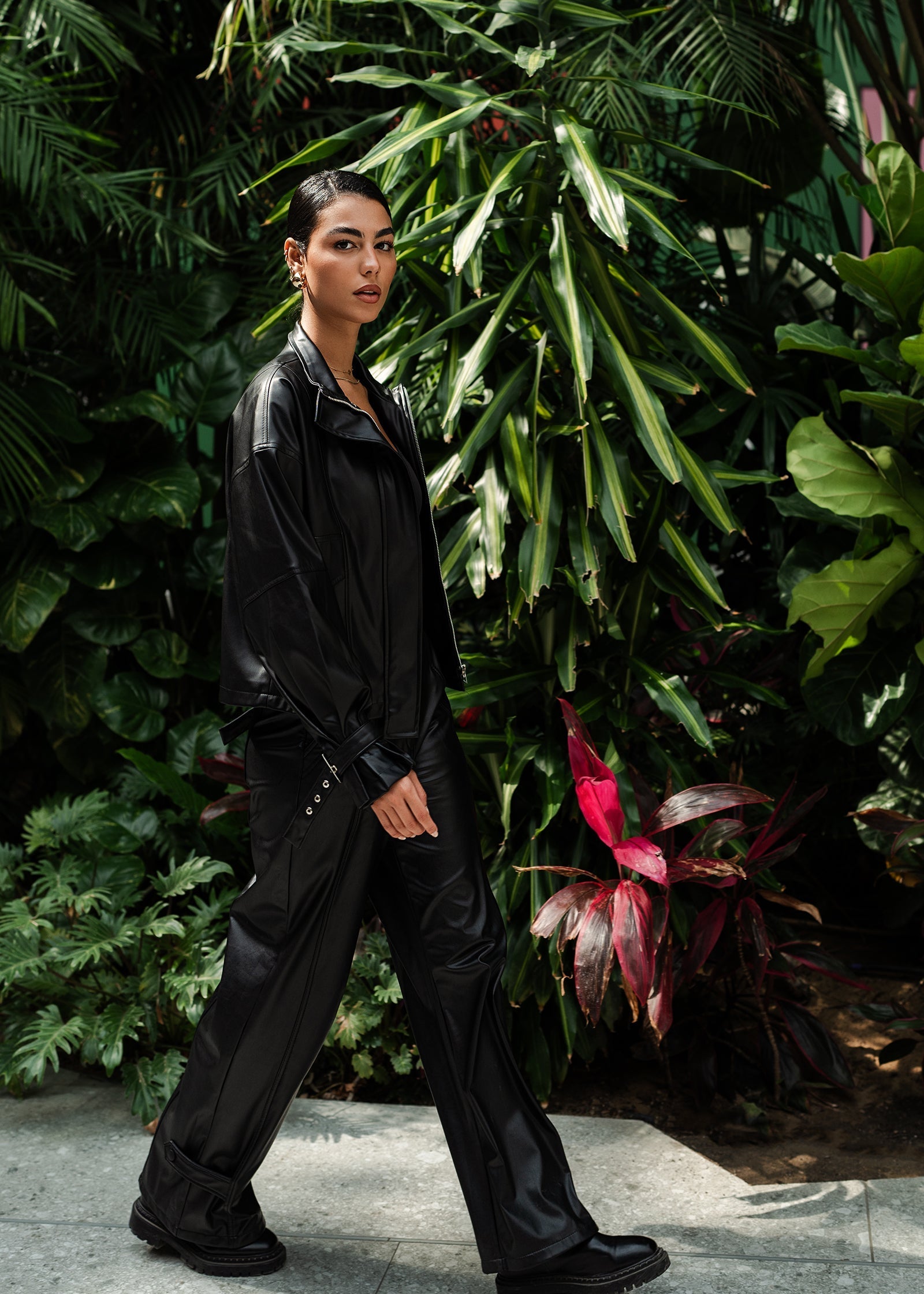 - Evening Glam: Dress up the pants for a night out by pairing them with a silky camisole or a fitted crop top. The high-shine finish of the leather adds a glamorous touch, while the wide leg cut provides a sophisticated silhouette. Pair with statement heels and bold accessories for a head-turning evening look.